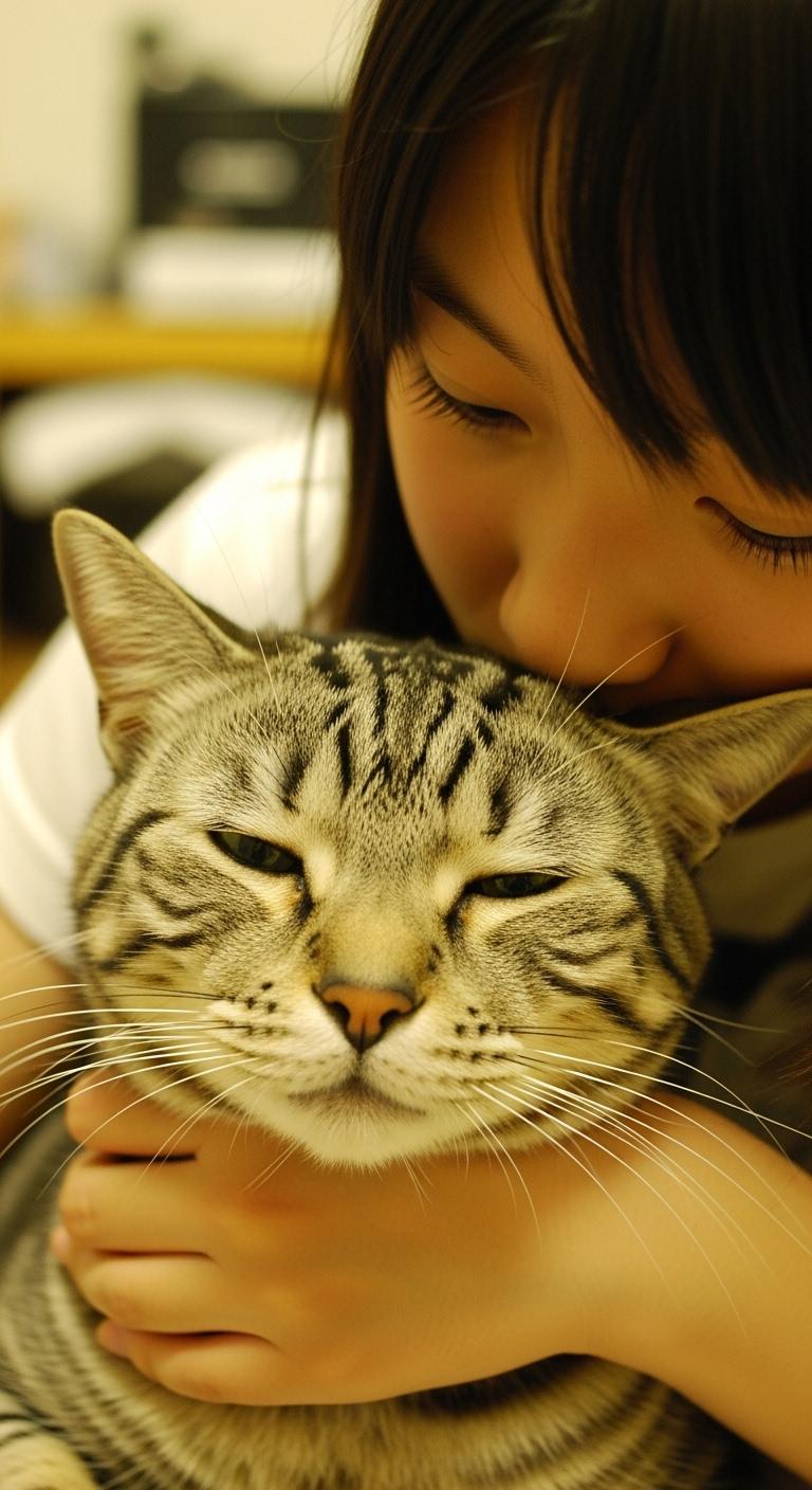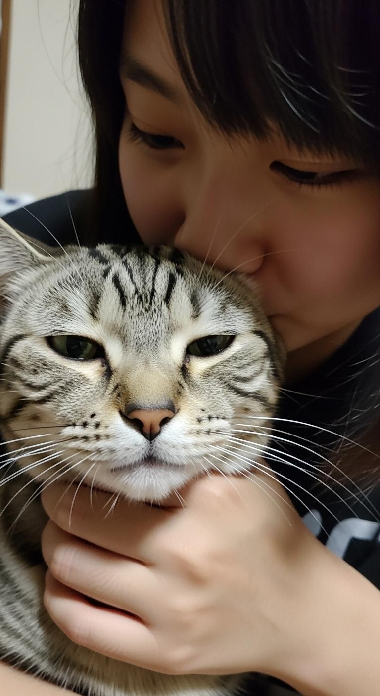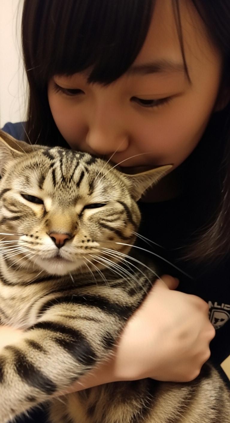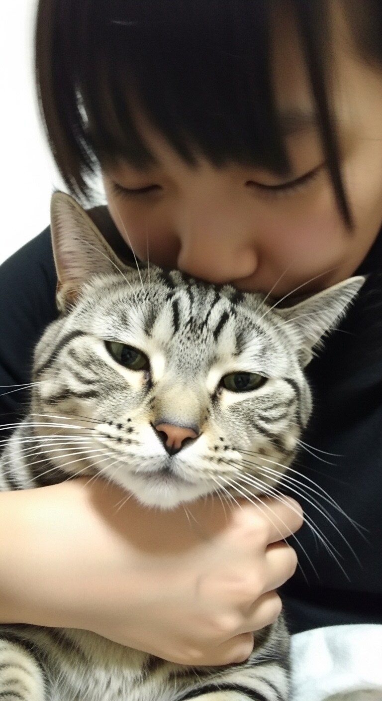 猫にキスする子