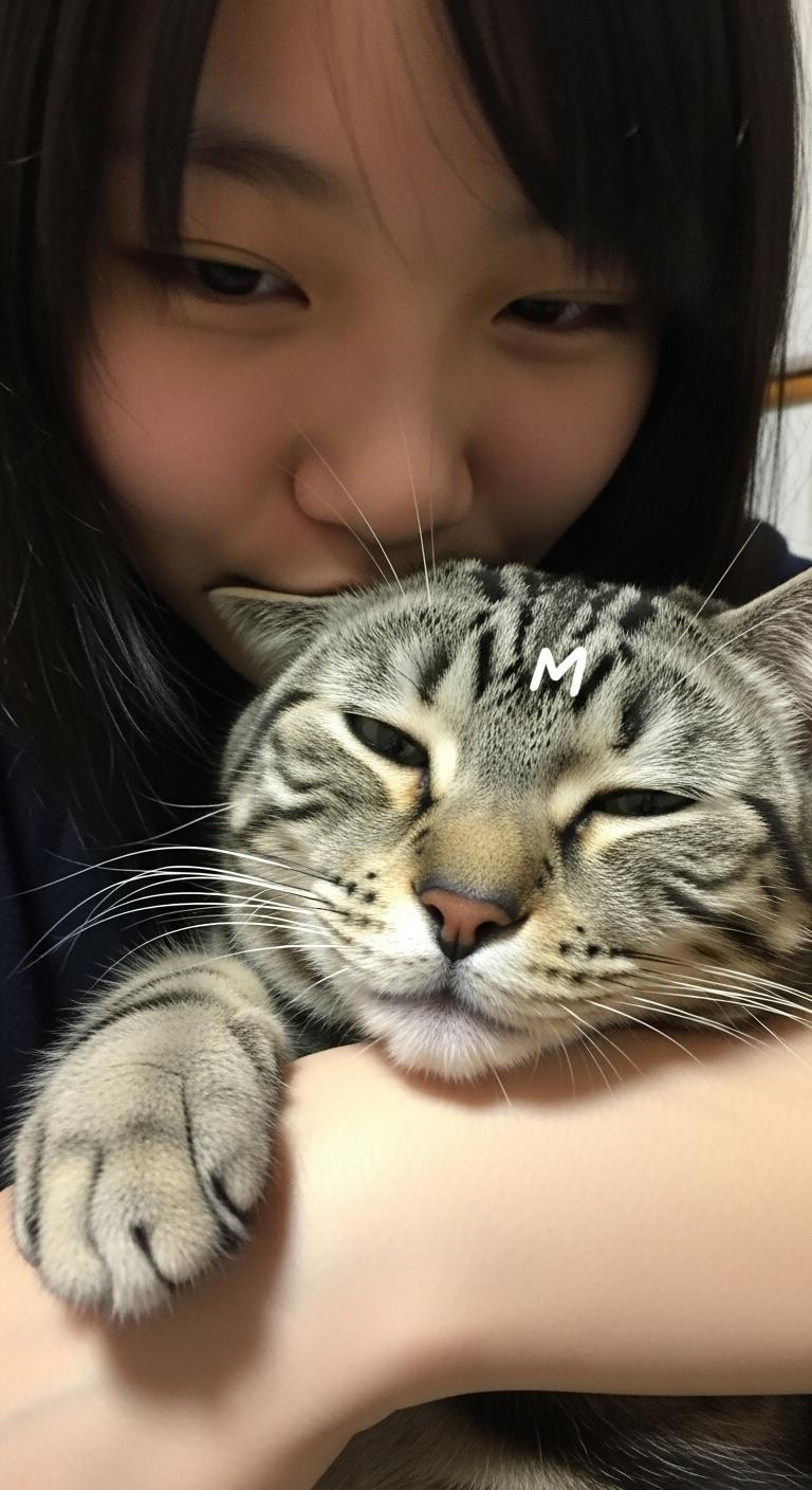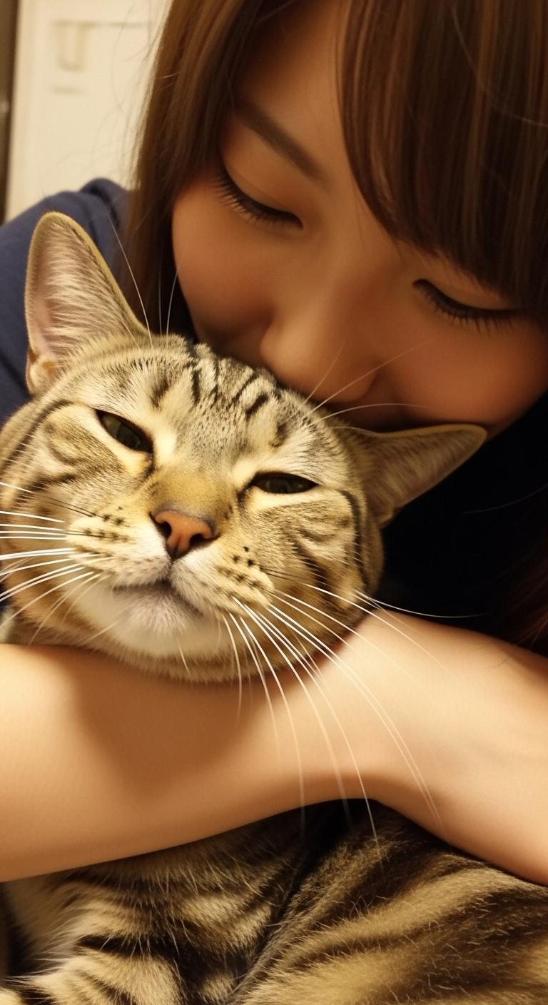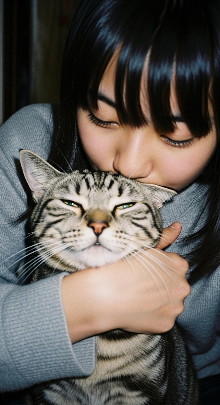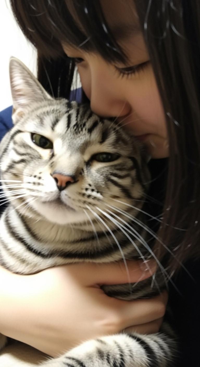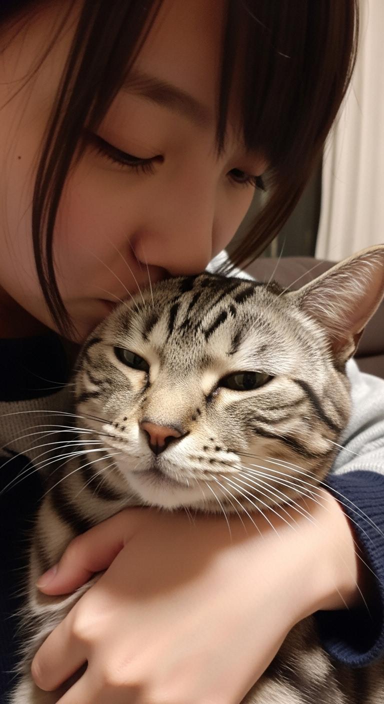 猫にキスする子