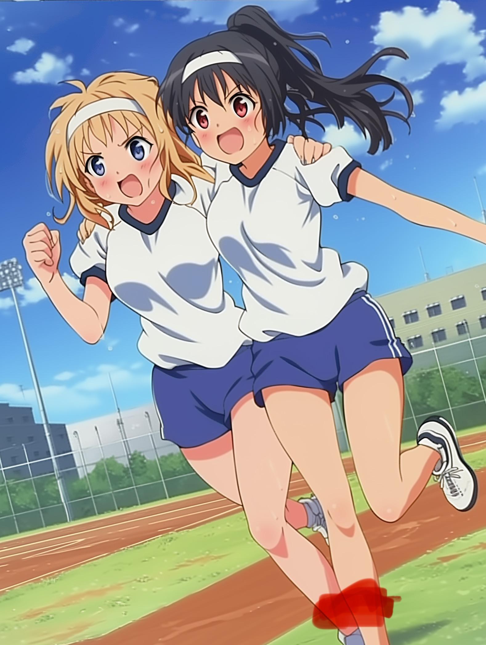 足を縛るのがどうしてもできなかったので、2枚目を普通に生成してから、落書きして他のAIイラストアプリで修正しました。
