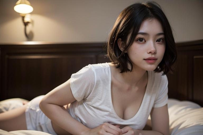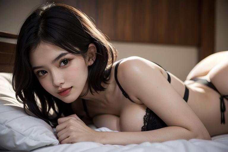 美女とベッドで…