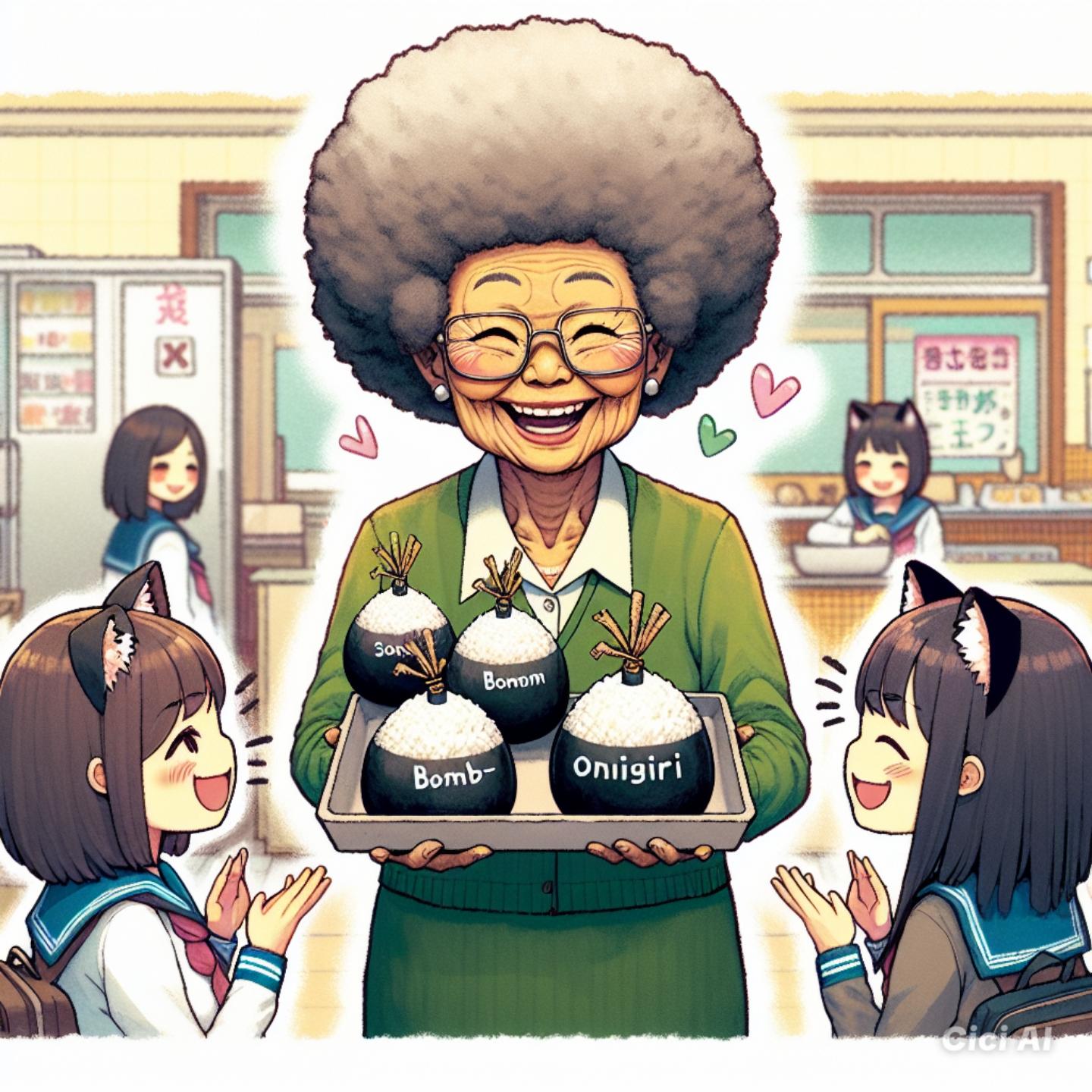 クリームパン争奪戦に敗れた、ひもじい生徒たちよ!安心してくれ!アフロボン婆が皆さんのために爆弾おにぎりを作ってきてくれたぞ!