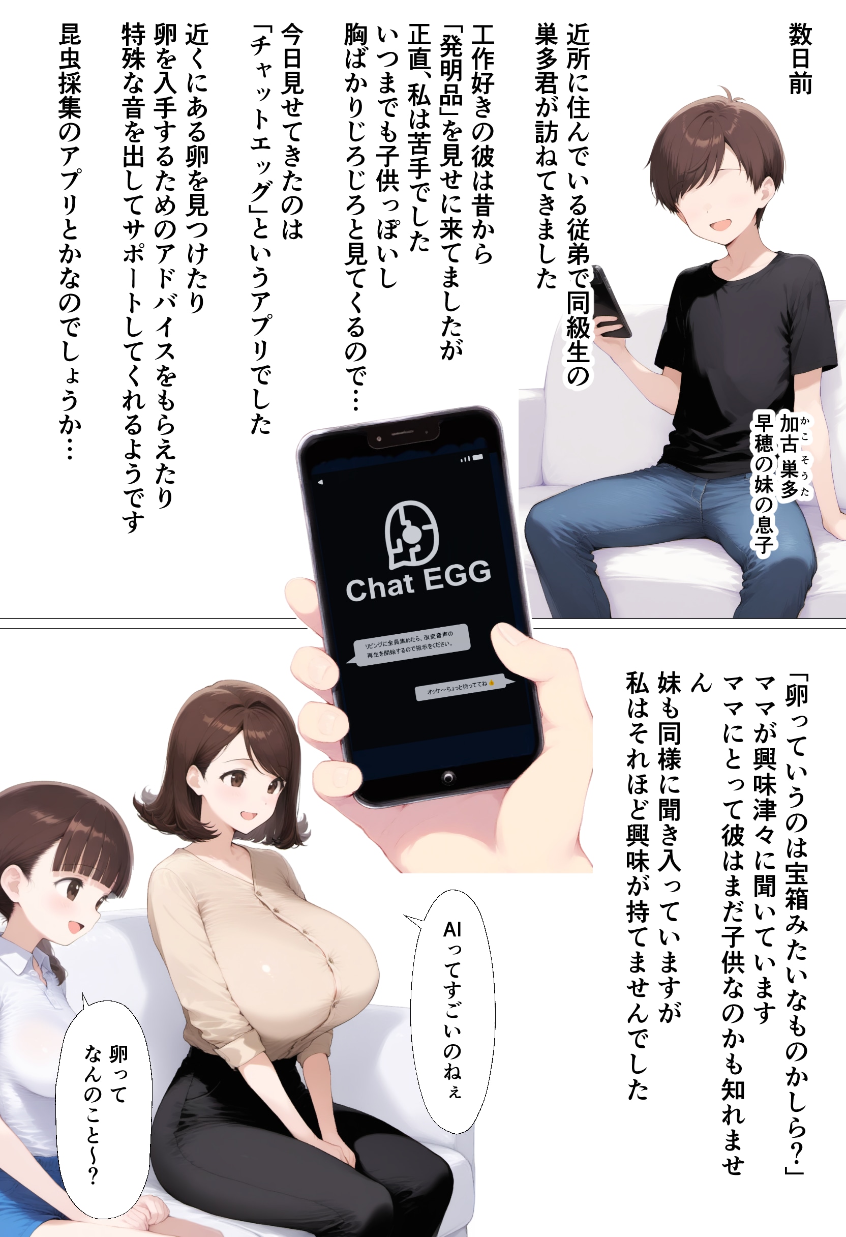 ある日、従弟の巣多が訪ねてきた。「チャットエッグ」という不思議なAIアプリを持って…。