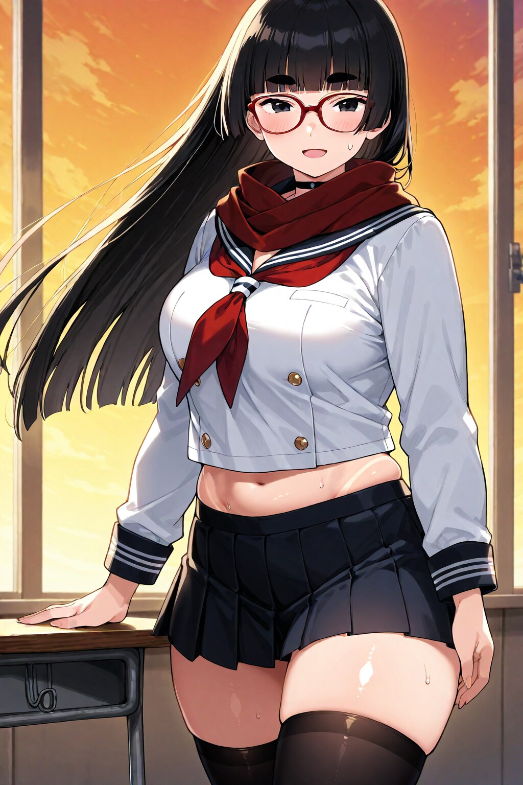 チョーカーが見えない様にマフラーを付けているんだという逆転の発想が降りてきました。