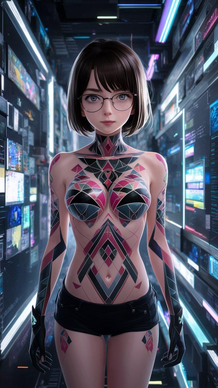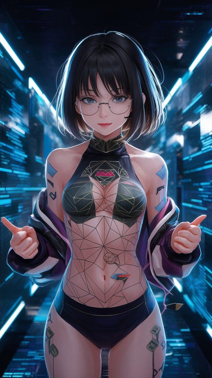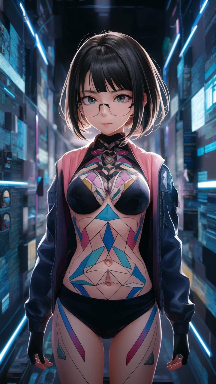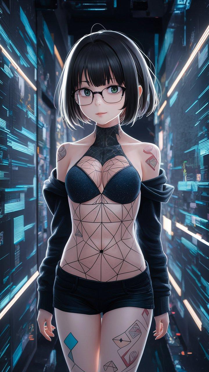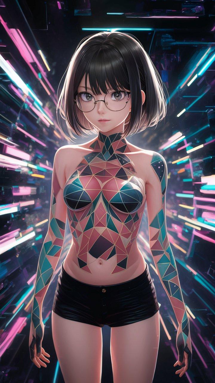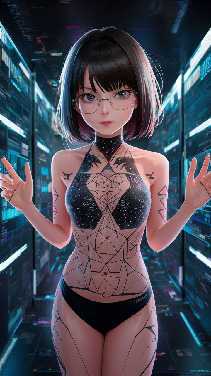そう言い終わる前に、彼女はジャケットを脱いだ。僕がその体に見とれる間もなく、部屋中から照射されるレーザー光が彼女の肌に模様を幾何学模様を刻みつける。
