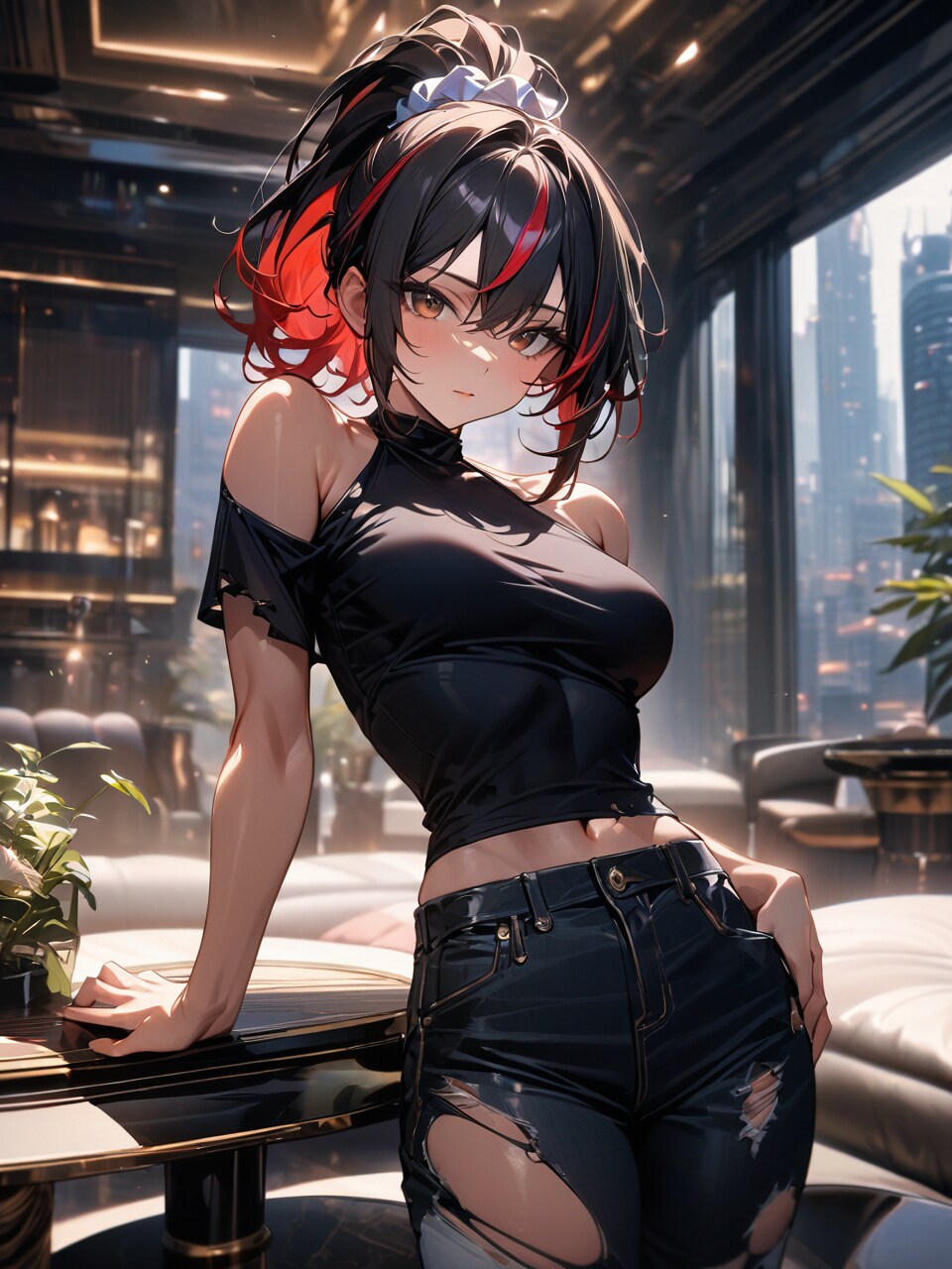 (bare shoulders1.1), T-shirt, (short sleeves1.1)
