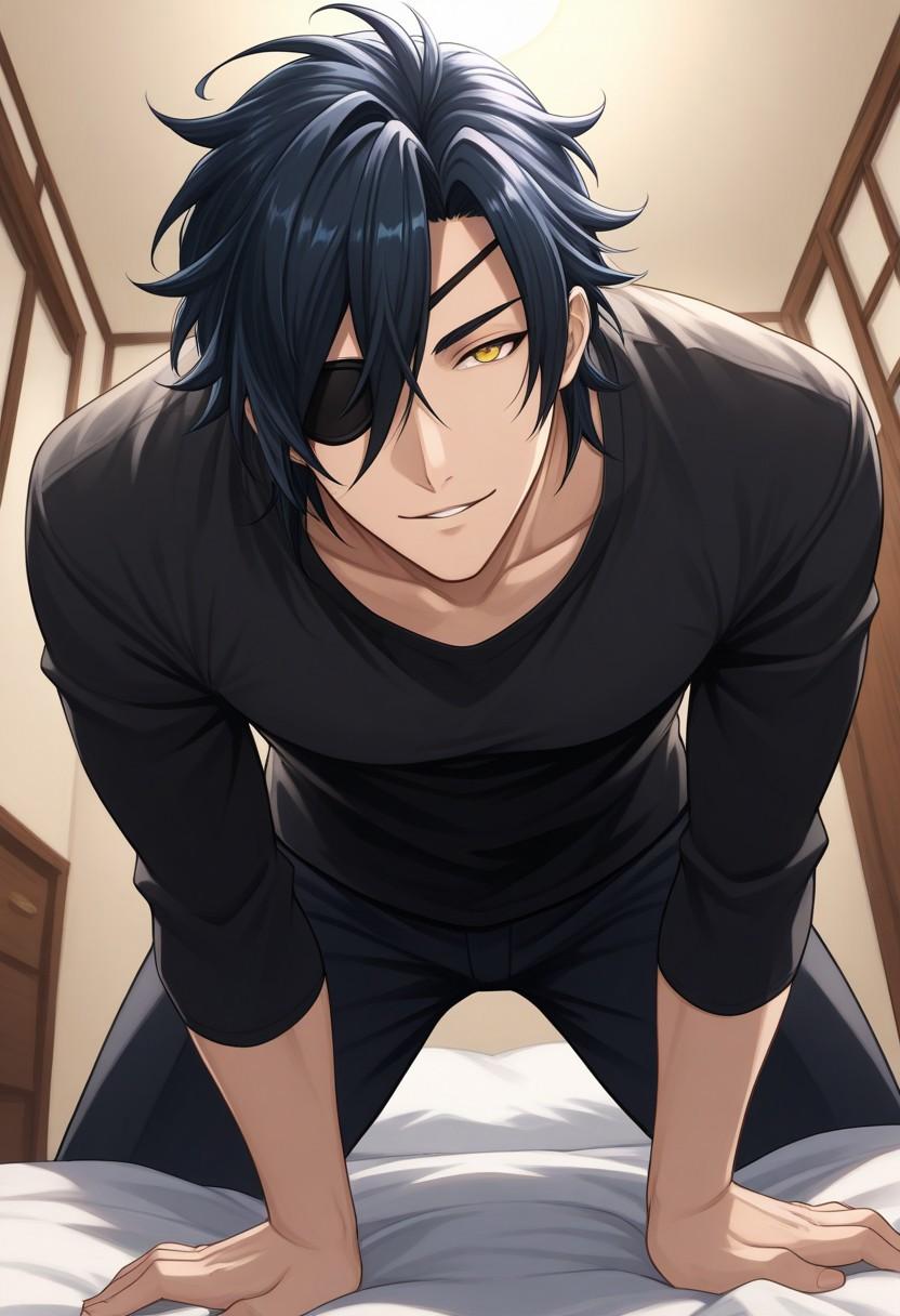 あ、因みにプロンプトの「in bed」入れてない状態で最初作ってたら、どうしても立った状態で前屈みになって表情もにかっとした笑い方で光忠らしくなかったから調整したらくっそいいのができたのがこれ( ̄▽ ̄)b。