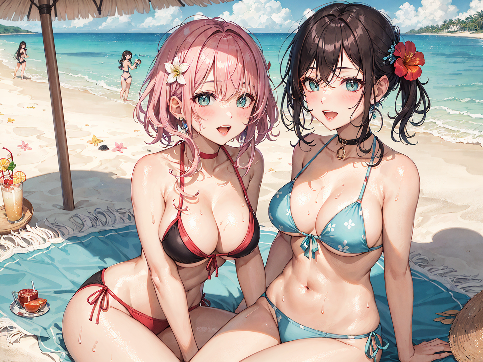 ビーチガールズ (🏖️👩❤️👩👯♀️🩱👙🌺🌅🌊🌴🍹🍦🐚💖💋) emj2img