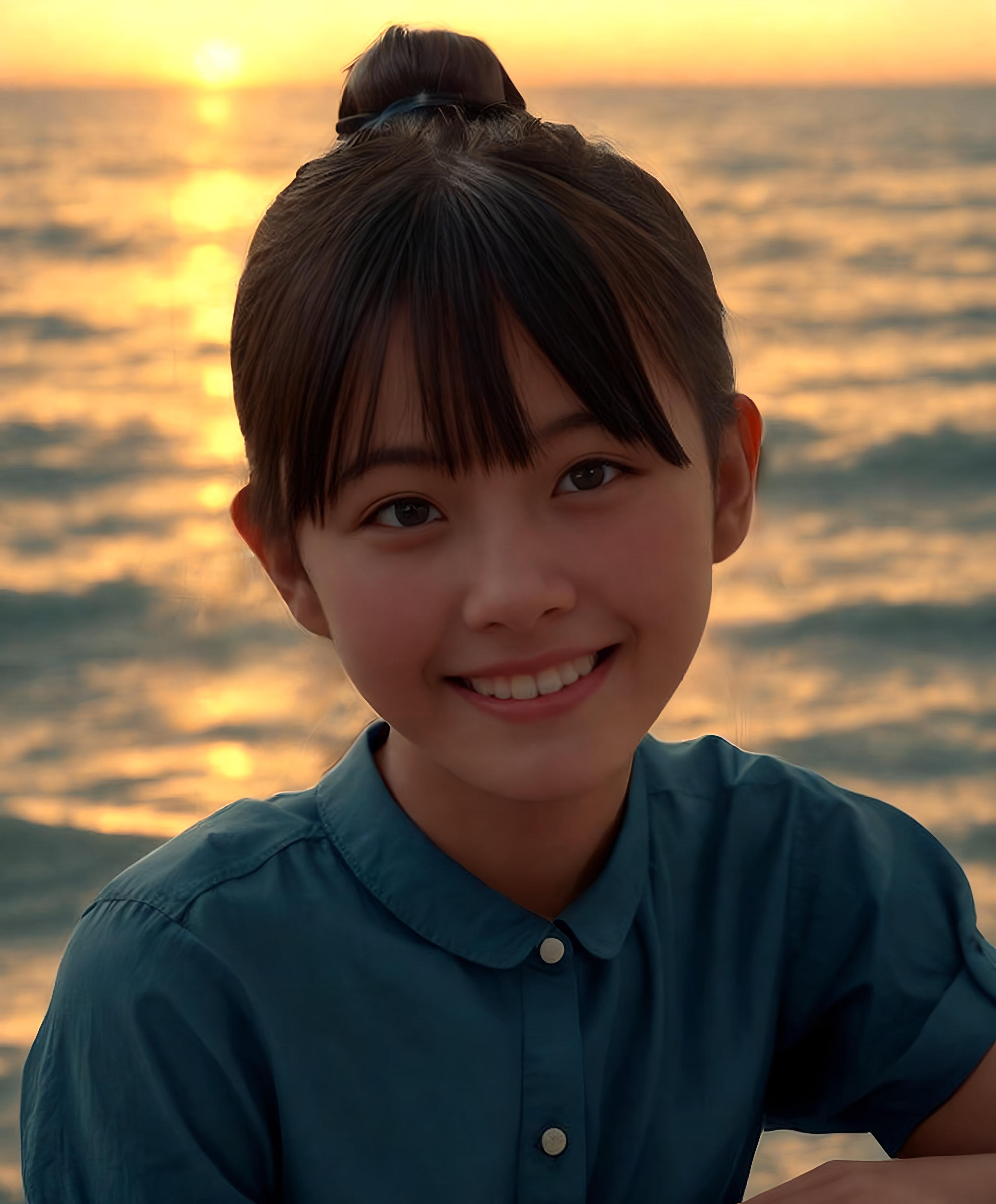 お団子ヘアと夕日