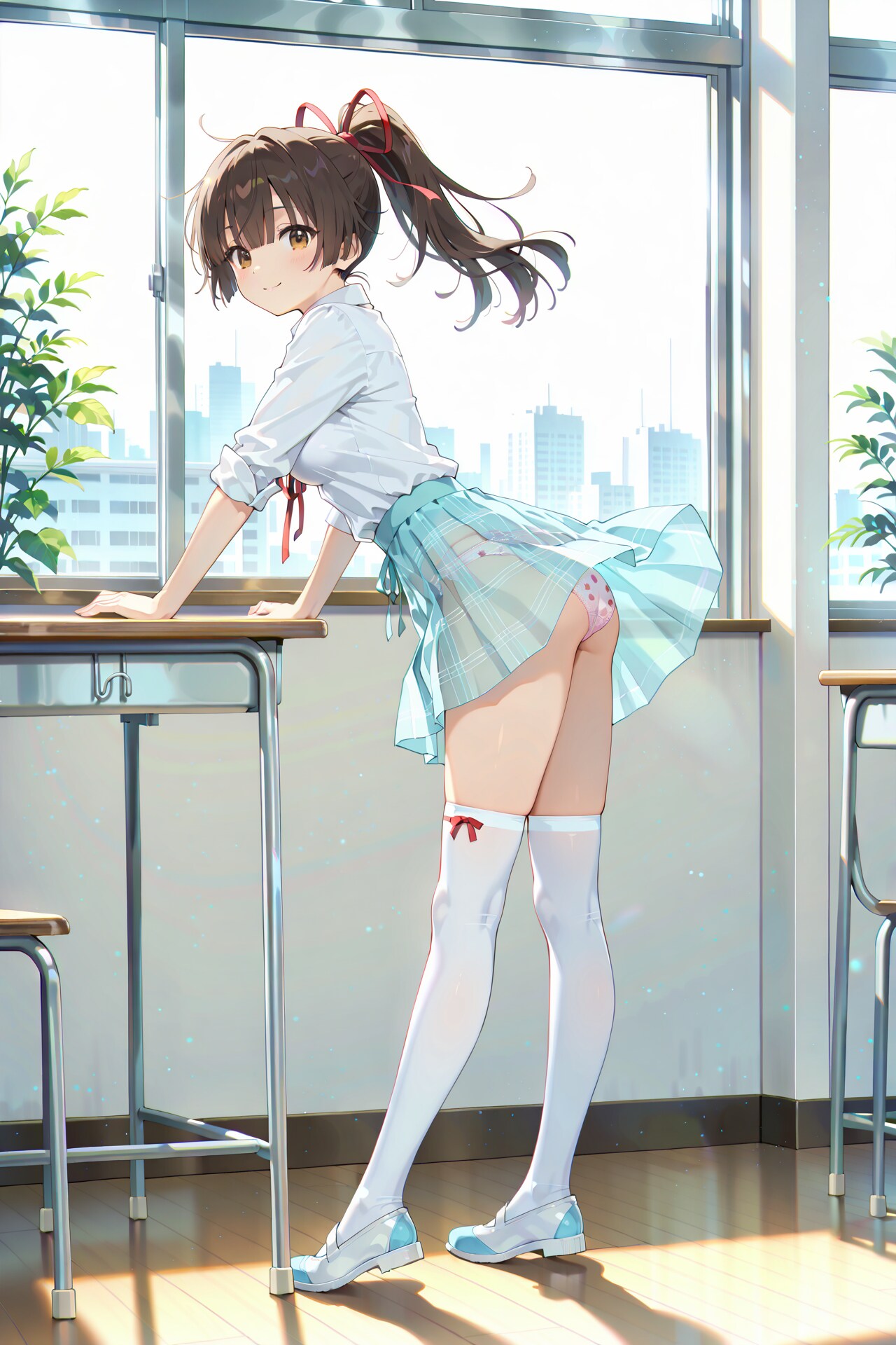 校舎内で、下着(主にぱんつ)が透けて見えている服での撮影会です。