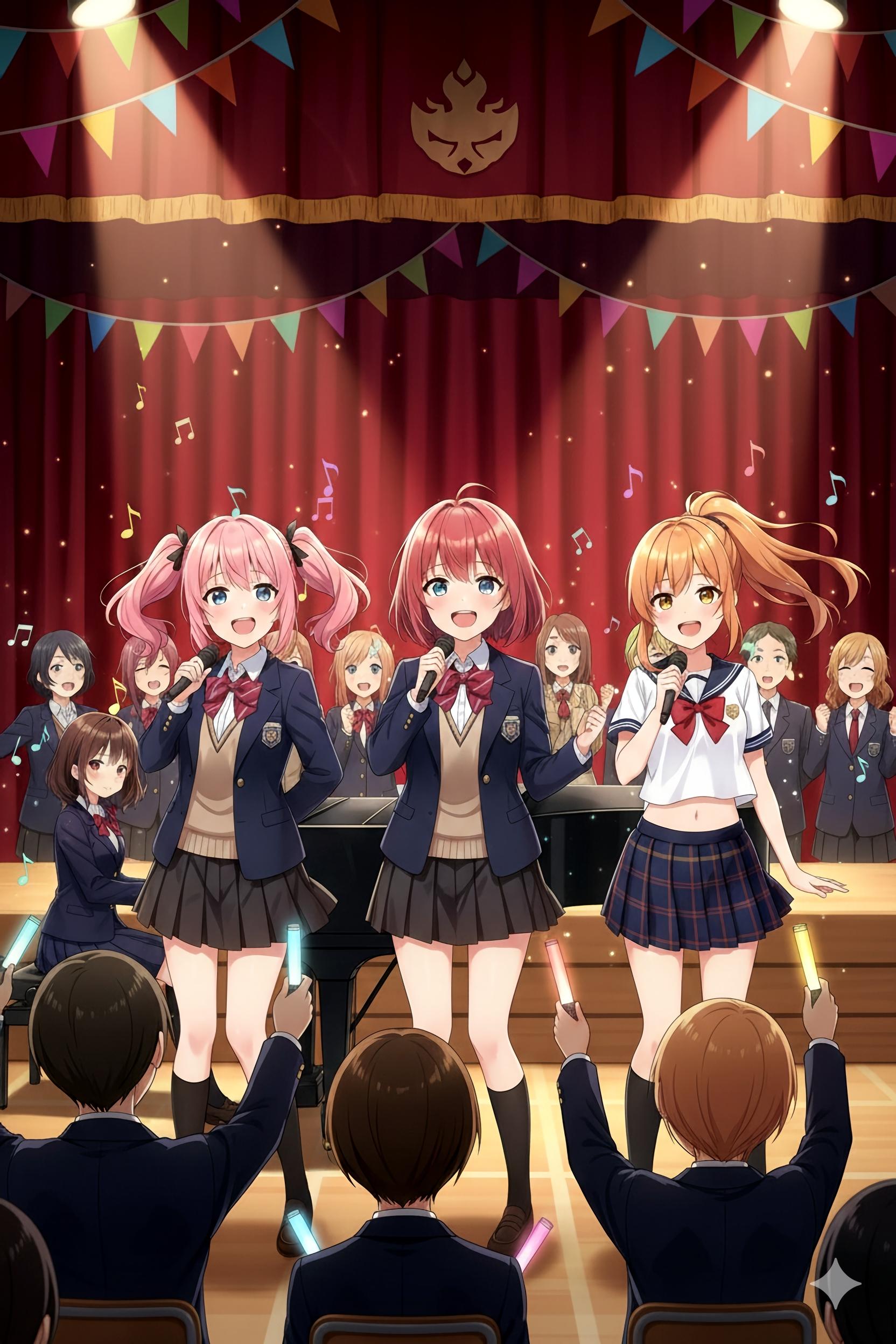 ナツミの明るい声が教室に響き、アキナが落ち着いたハーモニーを添える。