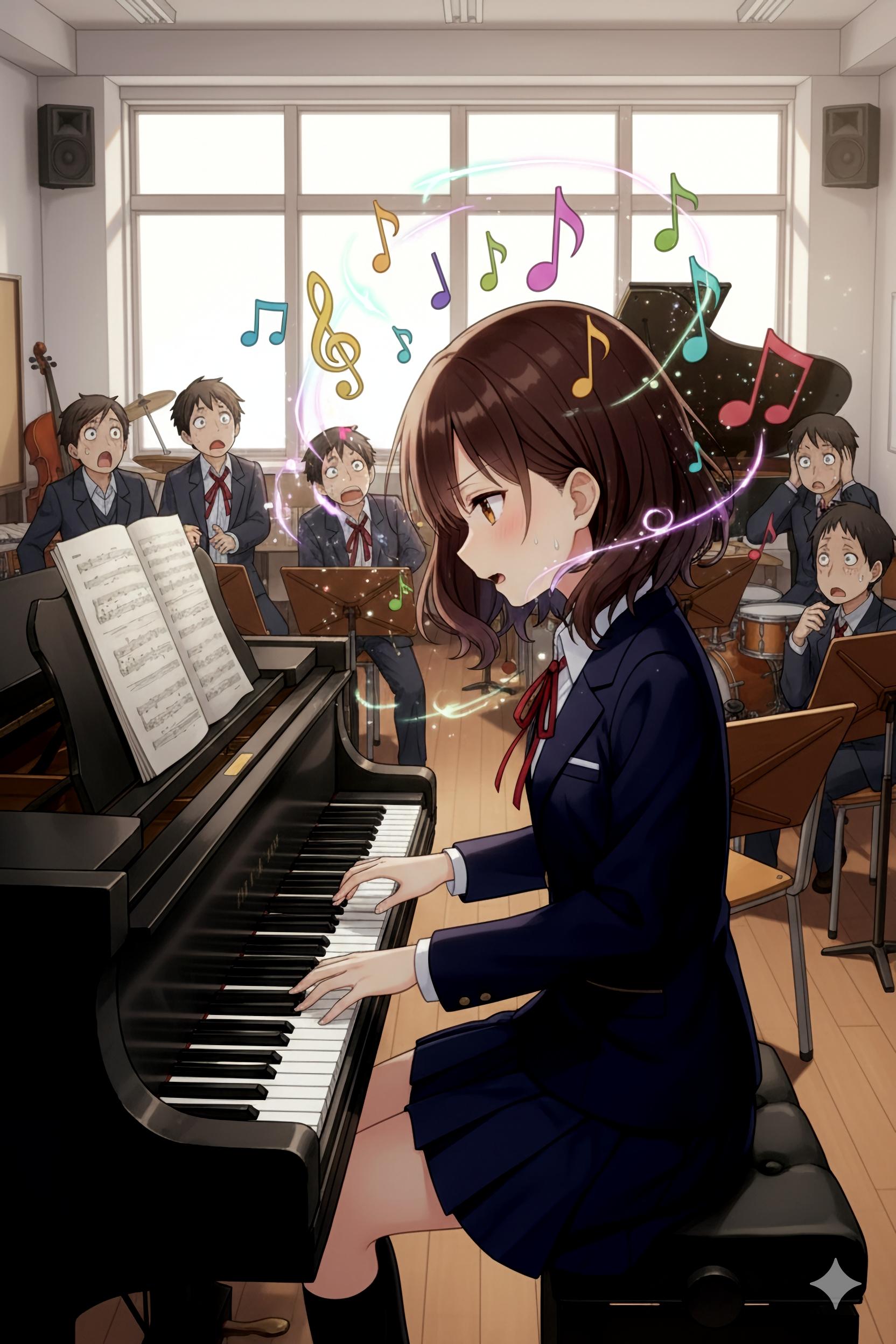 音楽室をのぞくと、そこに座っていたのは――ヒナタだった。
