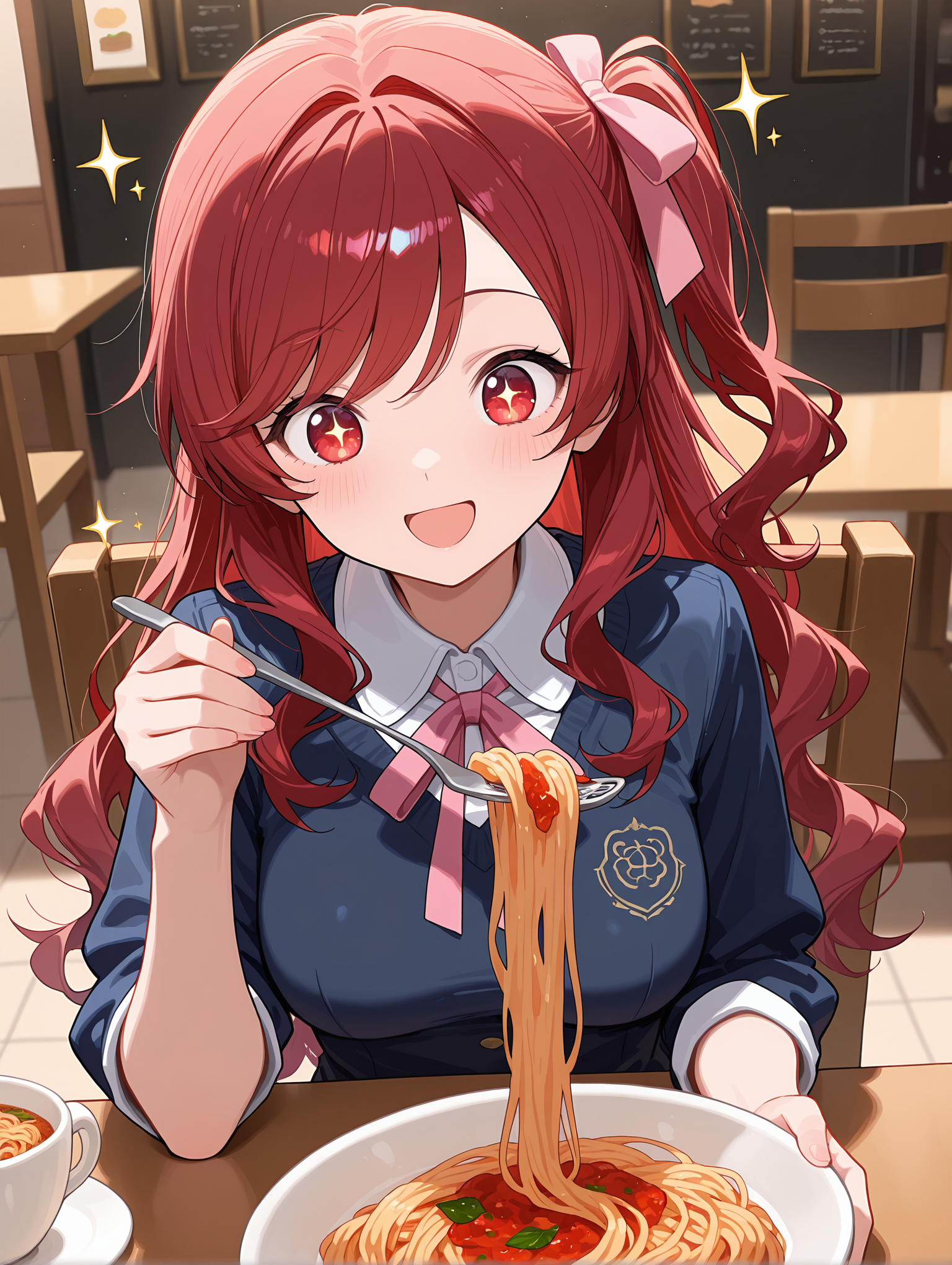 美味しそうにパスタを食べるミオちゃん🍝