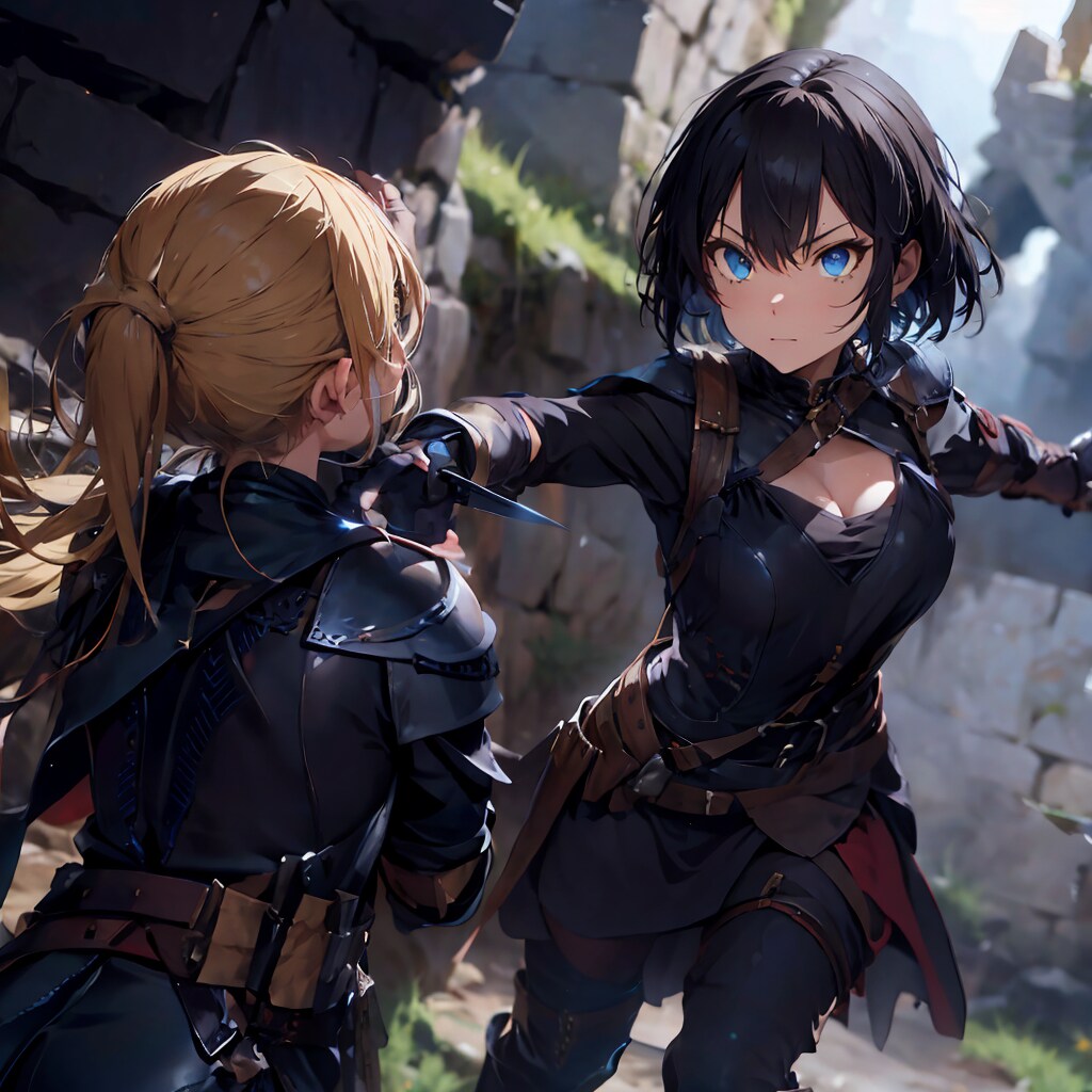 俺達を襲撃した女は、仲間の一人を壁に押し付け、油断なく刃を向ける。