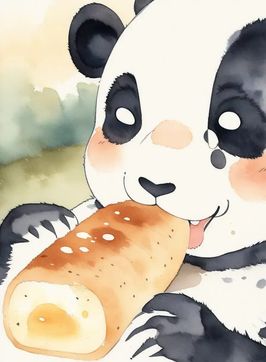 ③パンダこのやろう(パンを食べるパンダ)、panda is eating bread