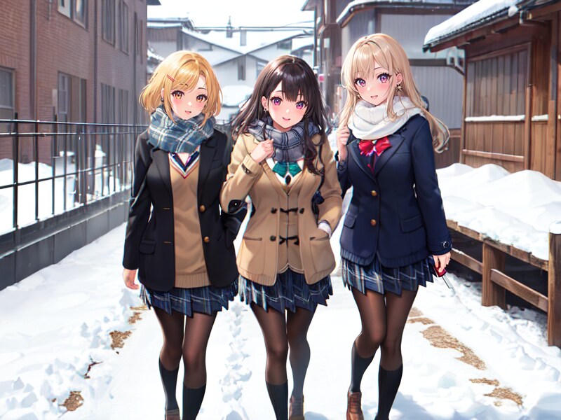 前回作画したものと違い、雪を降らせて、歩いている感じを出してみました。
