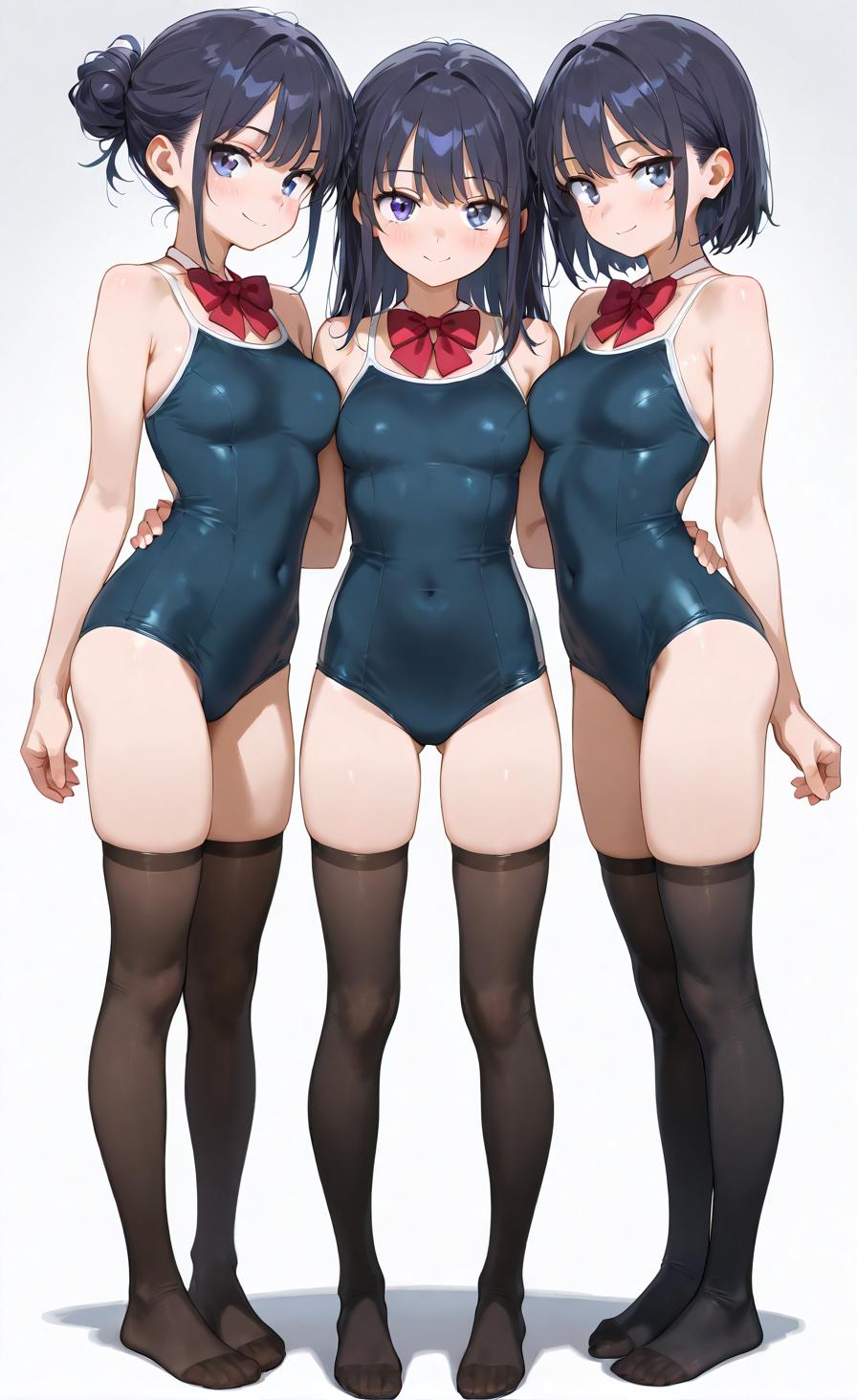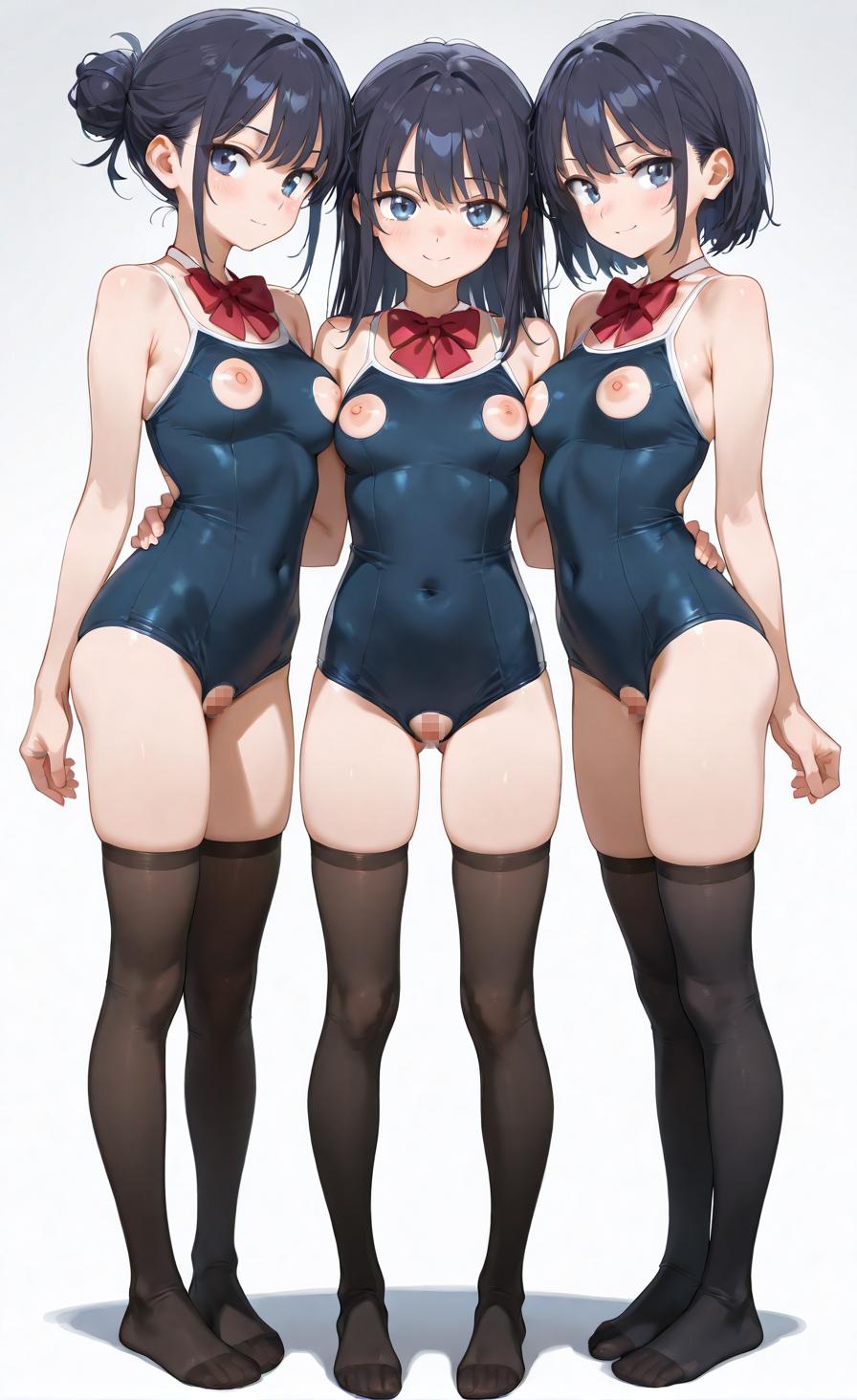 オナホ3姉妹にスク水ニーハイ制服リボンを着せる