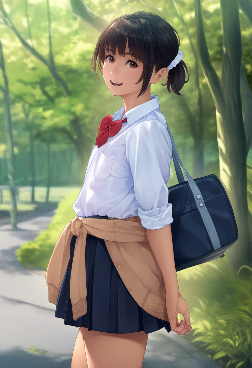 9枚目は公園での散歩、11、12枚目は学校からの帰り道のイメージで生成しています。