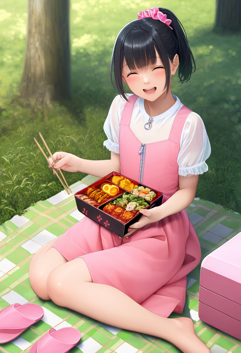 まだ桜の咲く前のお話なので華やかさはないですが、ピクニックらしくお弁当を出してみました😉