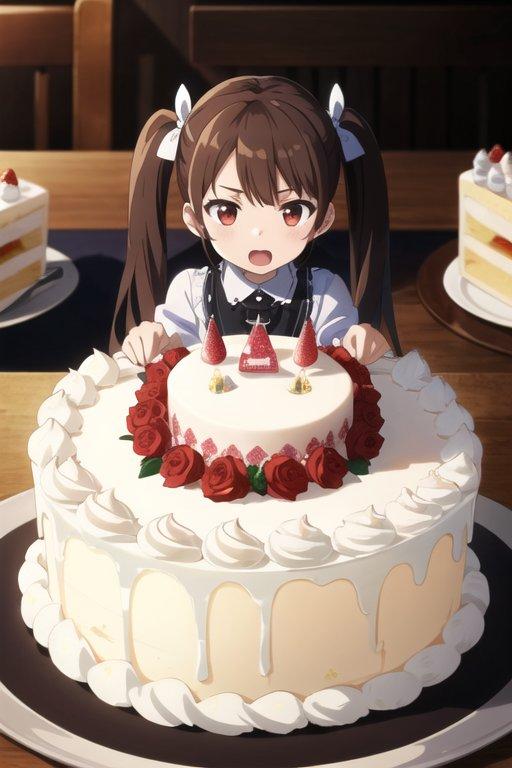 ケーキを食べようとしたら小さくなっちゃった女の子。