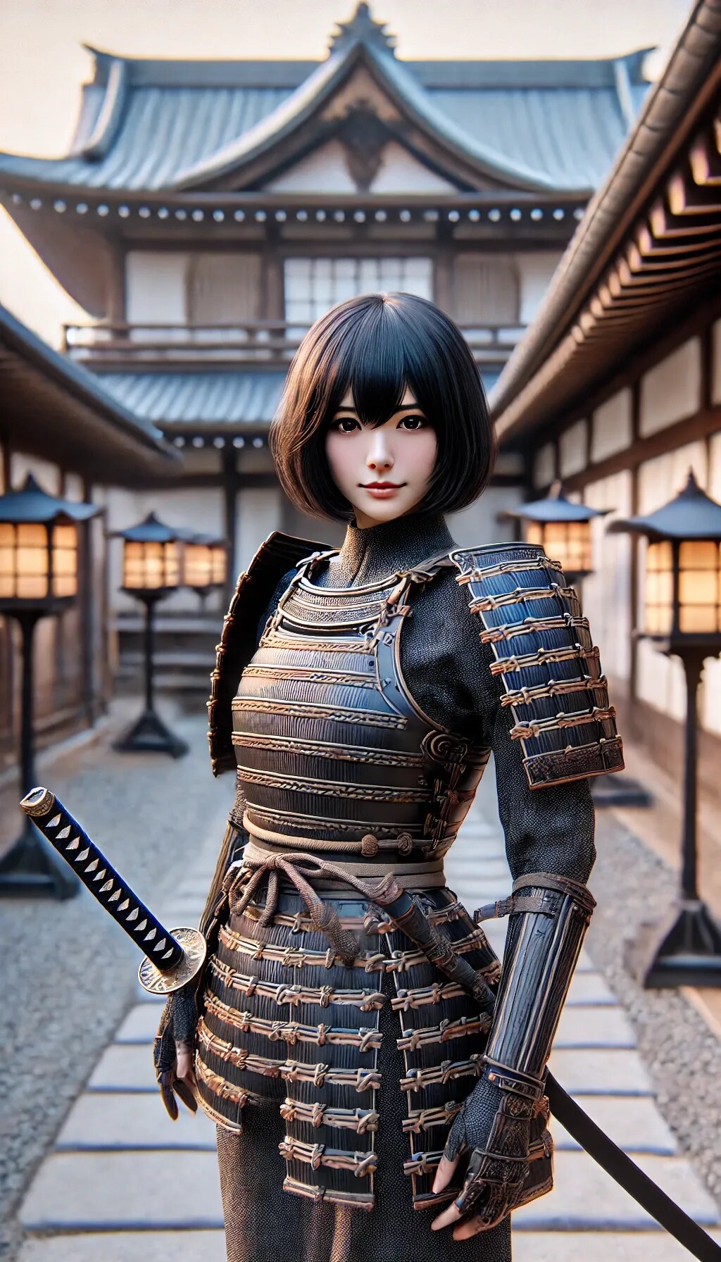 現代の学生モデルが侍に変身