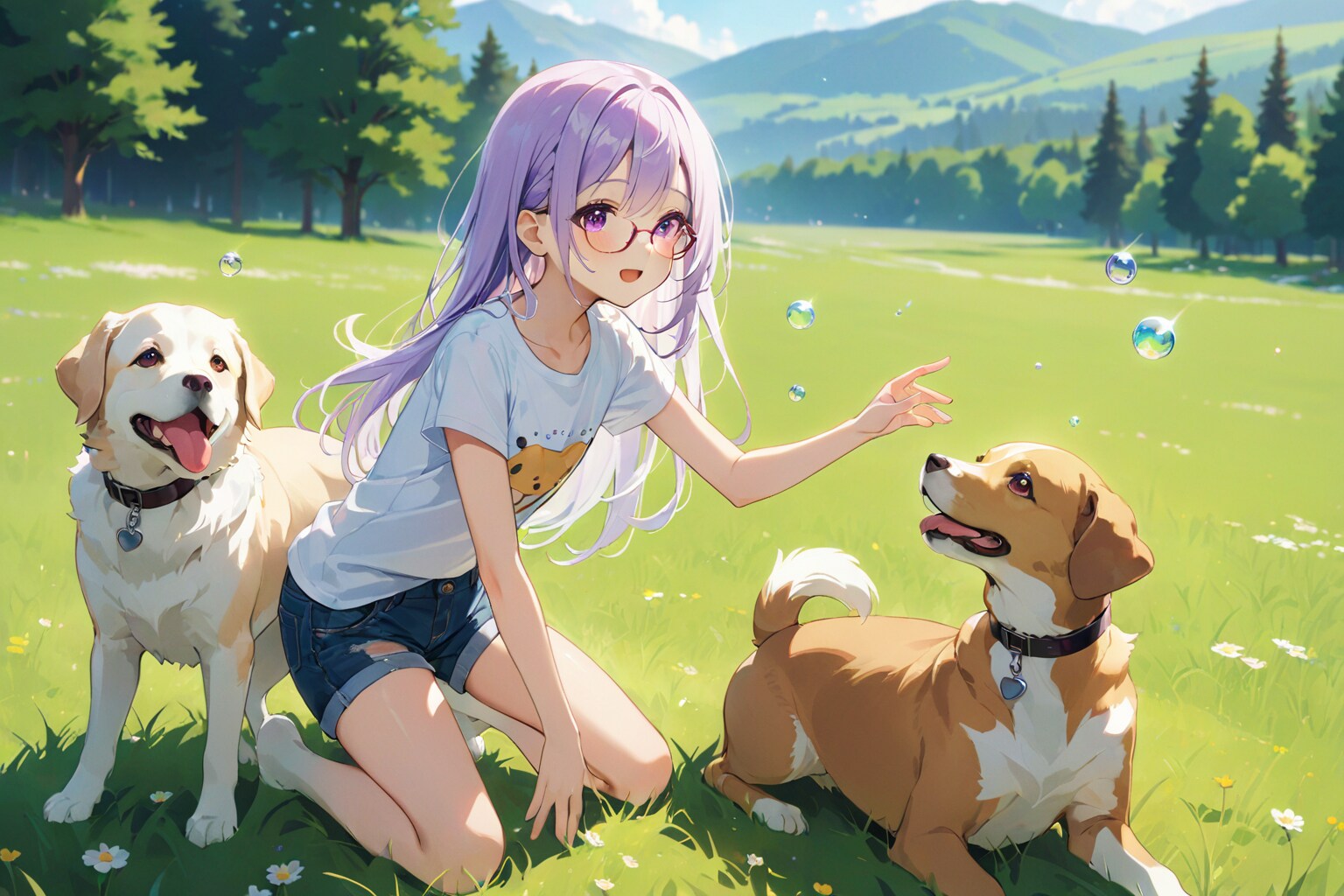 銀髪普段着(犬と草原とシャボン玉)_20240503