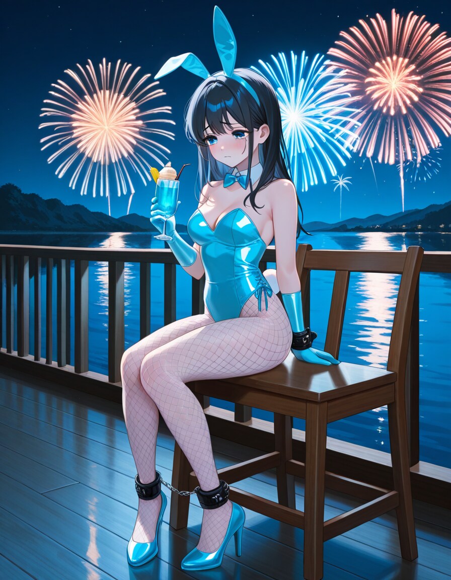 拘束されたバニーガール衣装の葵さんと花火