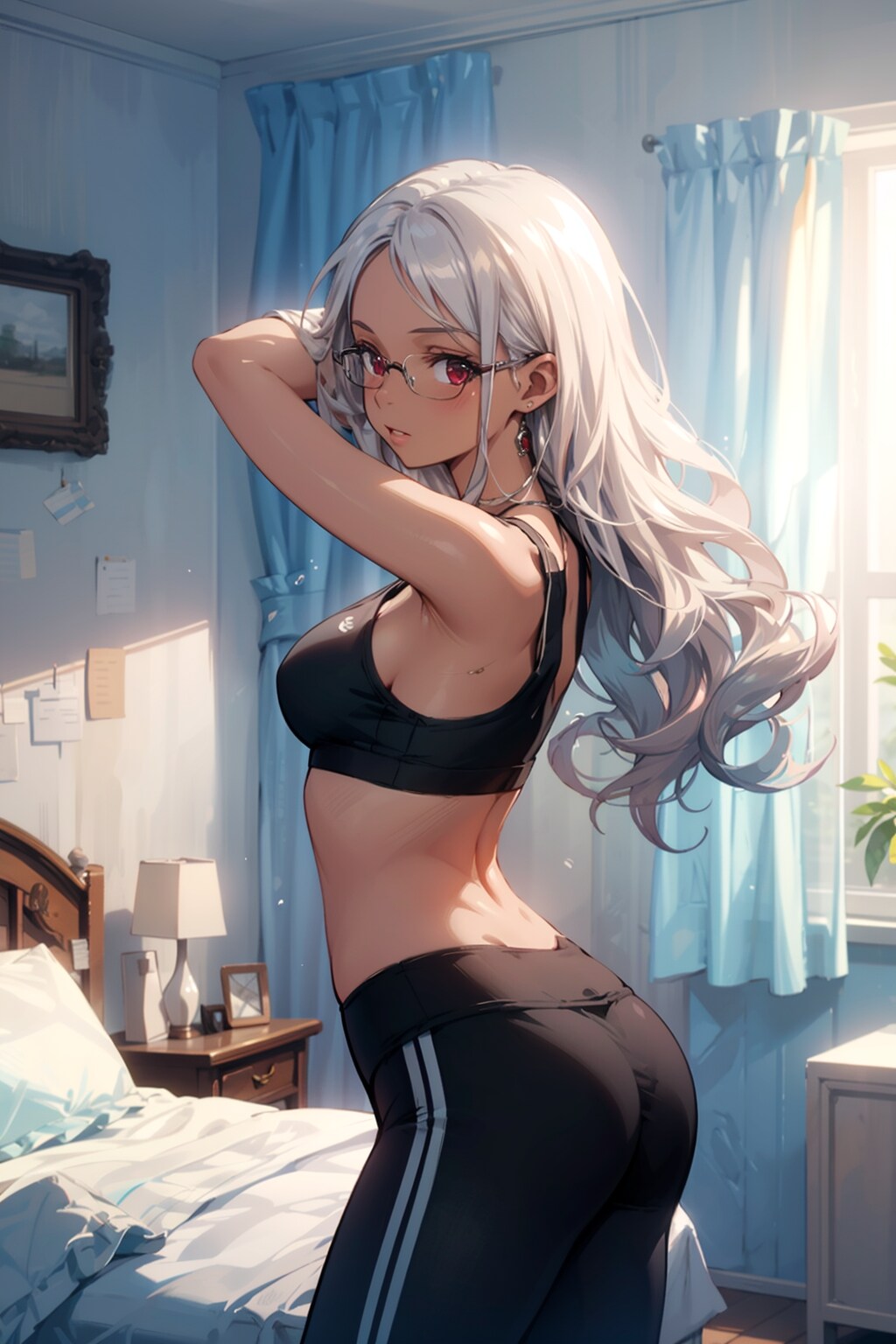ヨガする眼鏡お姉さん