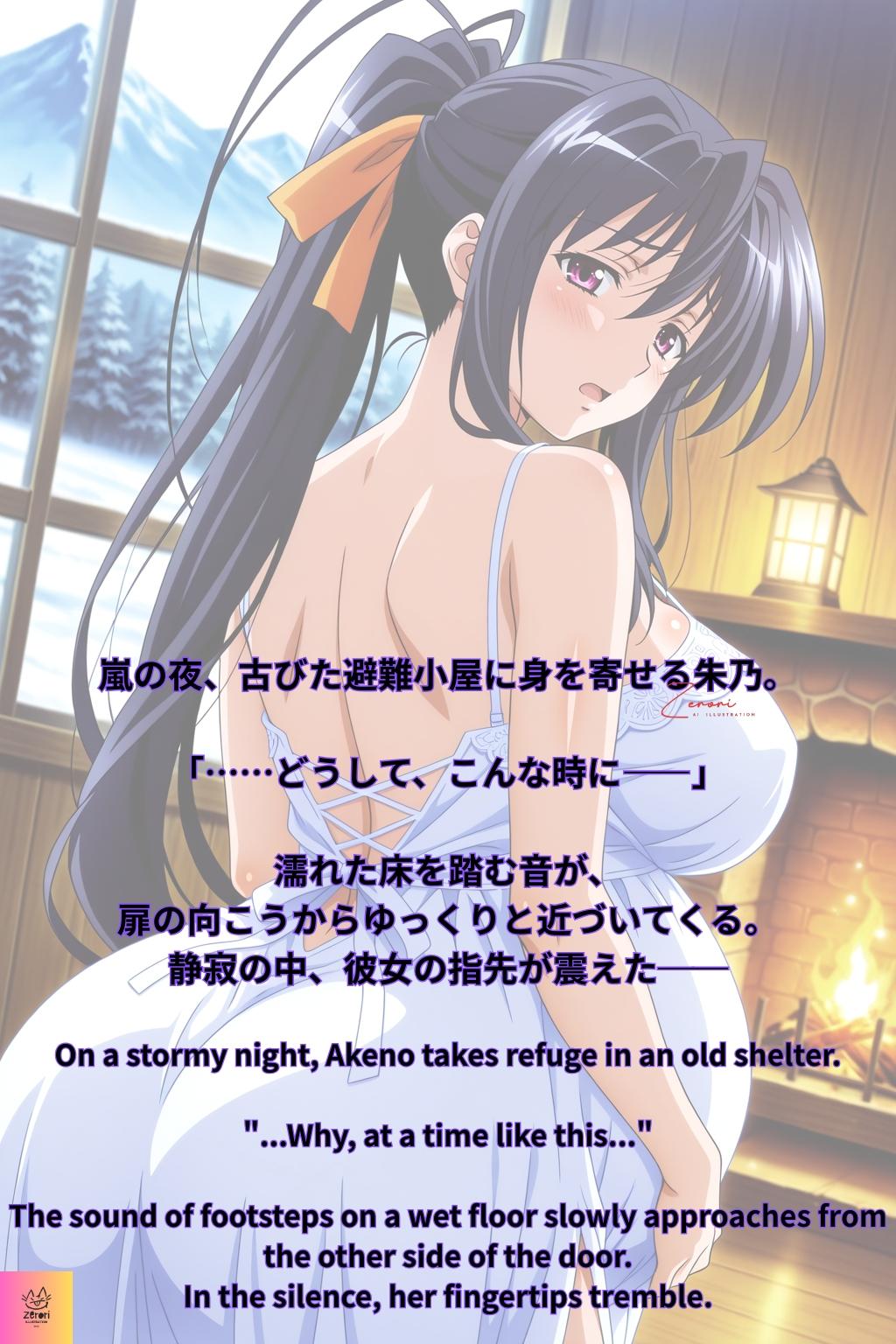嵐の夜、古びた避難小屋に身を寄せる朱乃。