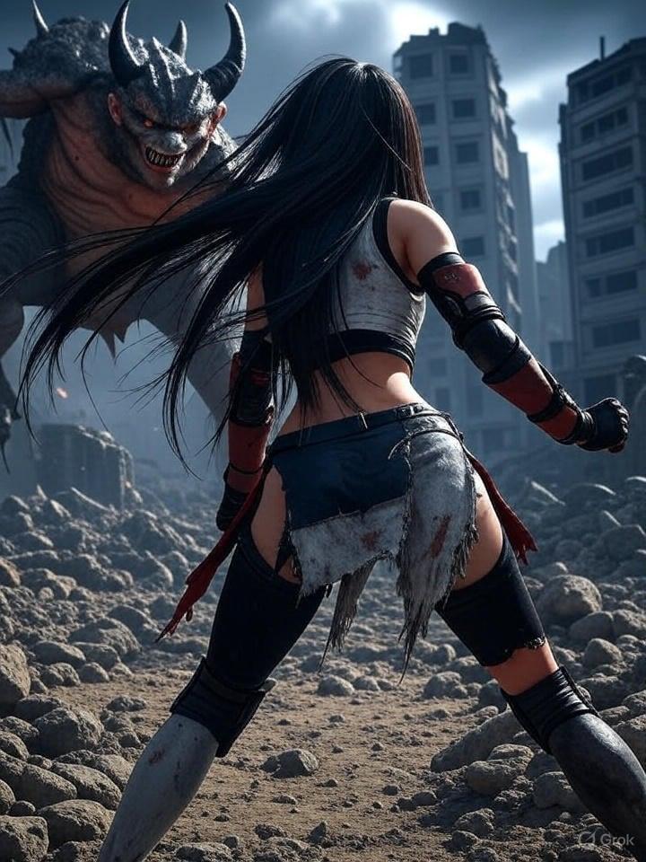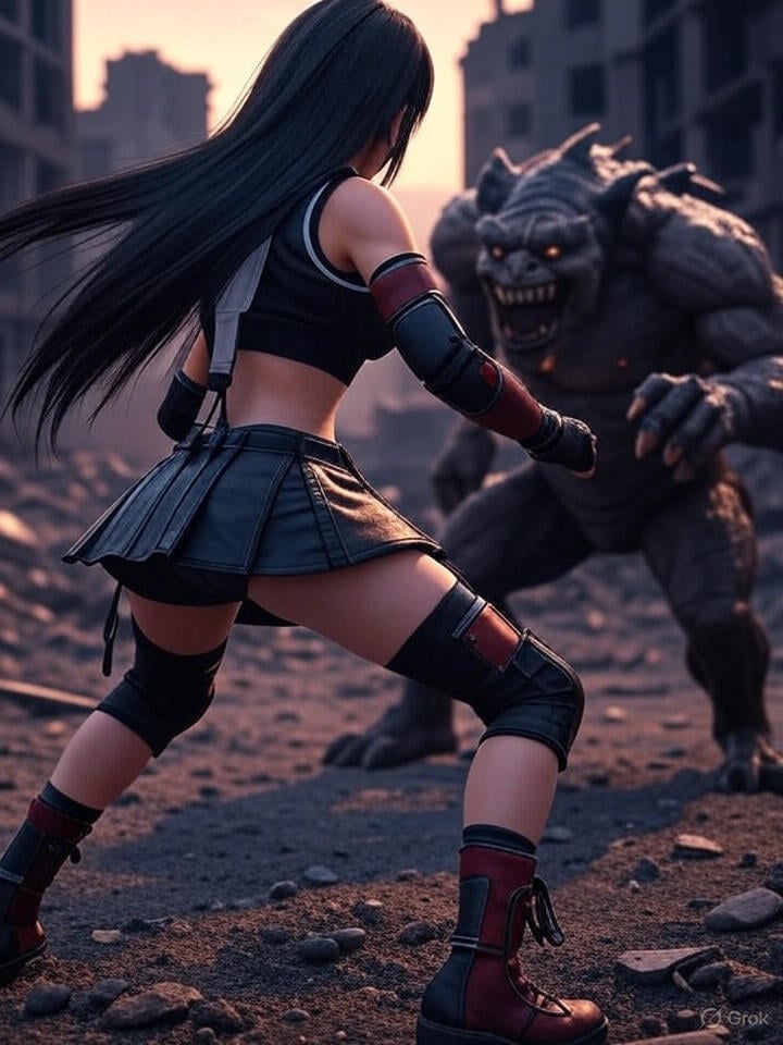GrokでFF7のリアルなバトルシーンを描いてみました。