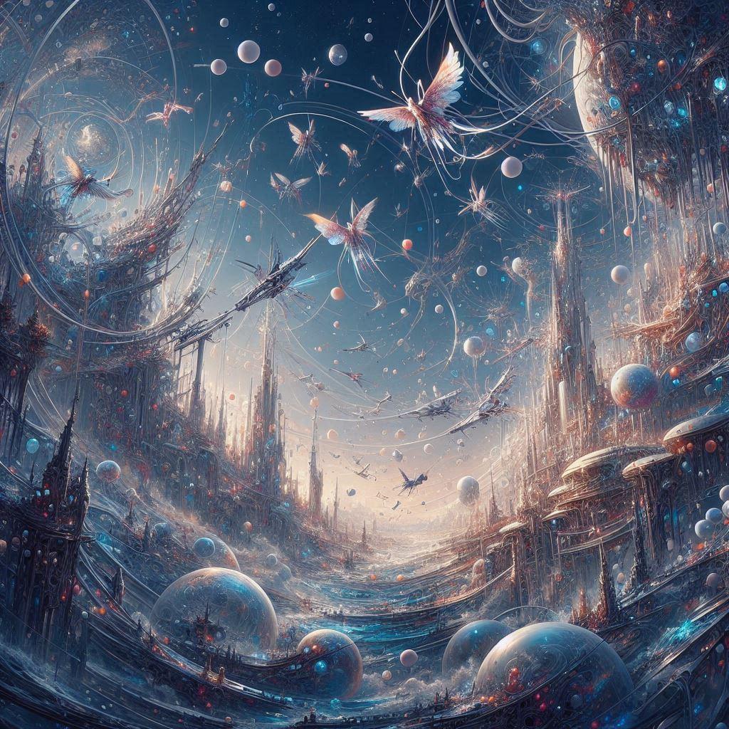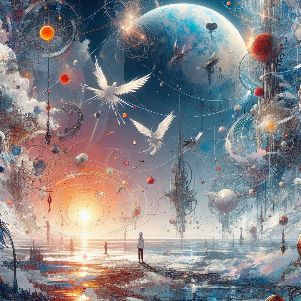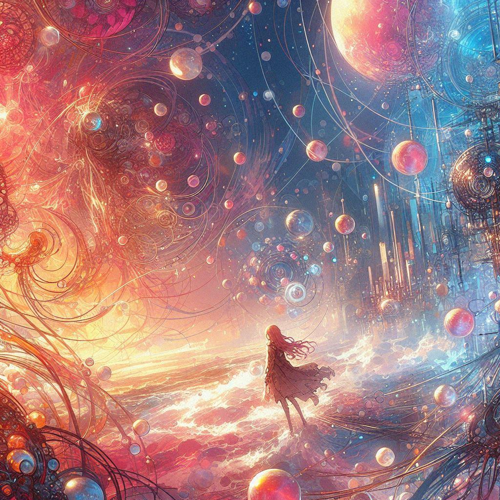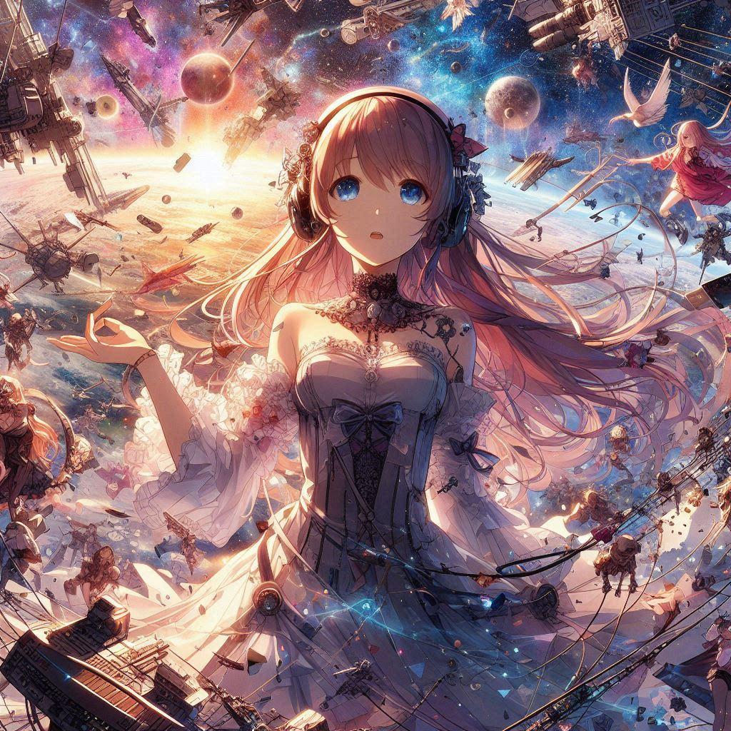 とにかく自分の思いつく限りの混沌としそうなプロンプトをねじ込んでみたところ、何だか前衛芸術な感じのイラストに・・・^^;