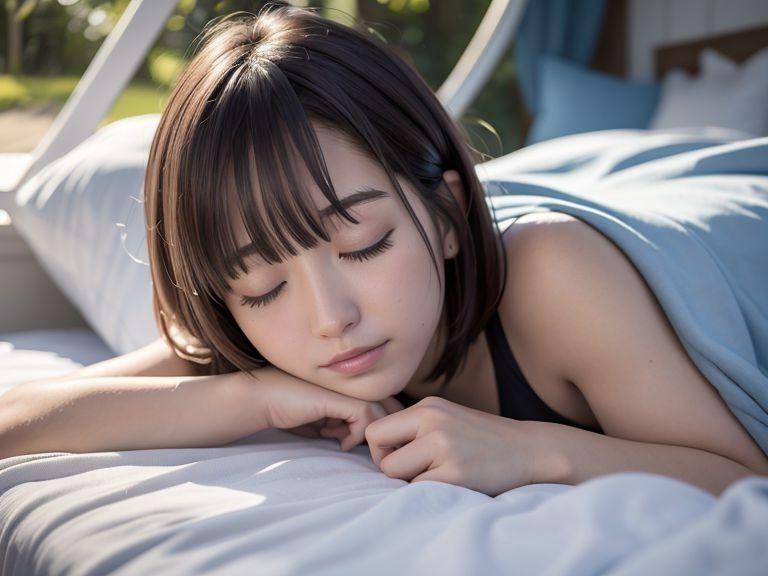 南の島の太陽の陽射しを浴びて遊び疲れてコテージのベッドで寝落ち