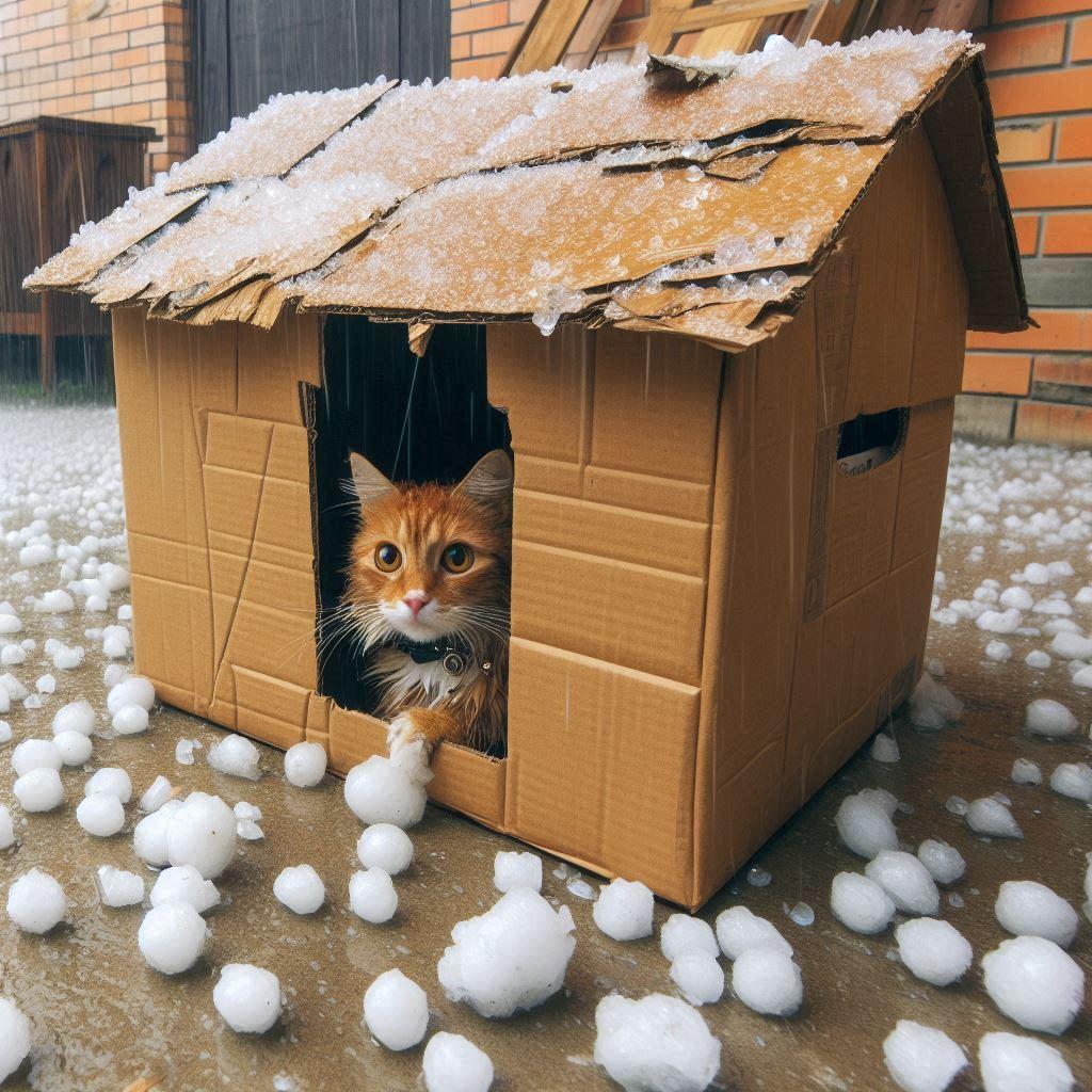 リアルでも月曜に雹が降り実家の車庫の屋根に穴を開けました。
