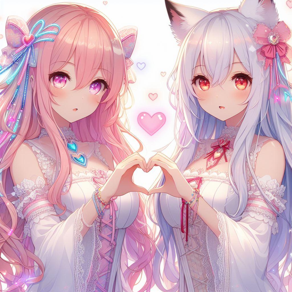 サイバーピンクと雪狐のHeartHands。イラスト版😄