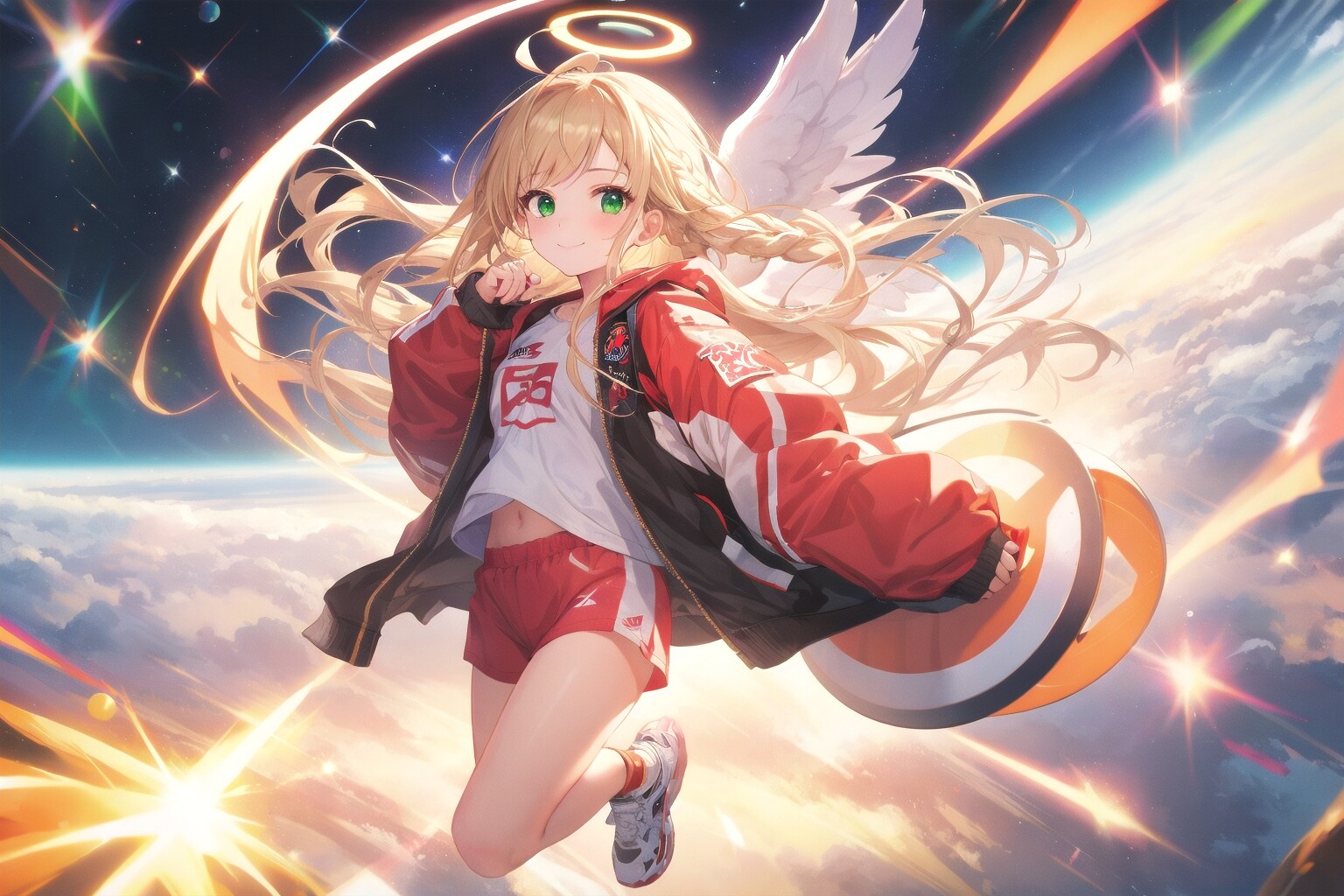 天使(飛行要素あり)描写だと今回の絵になりますが、ない場合はvelocityのcityで都市が出るので、ネガにcity:1.5入れると抑えられました♪