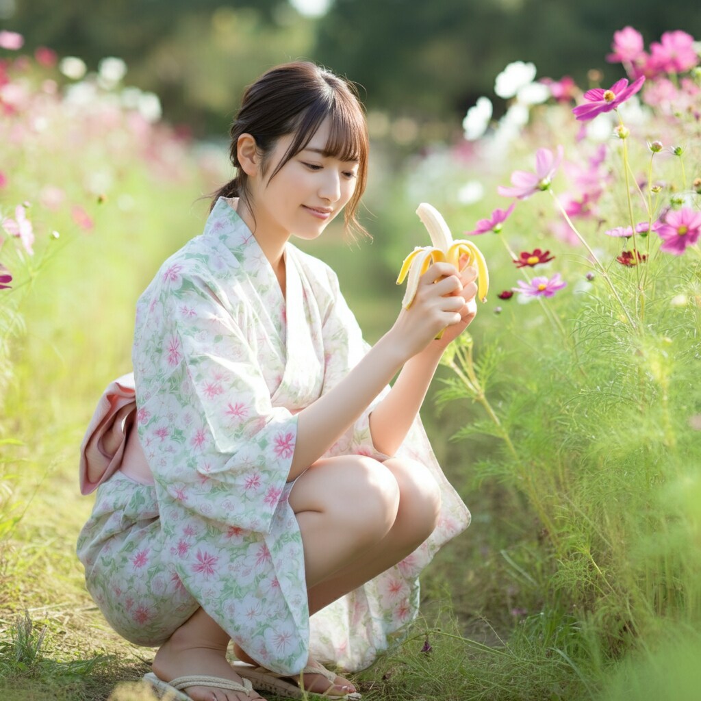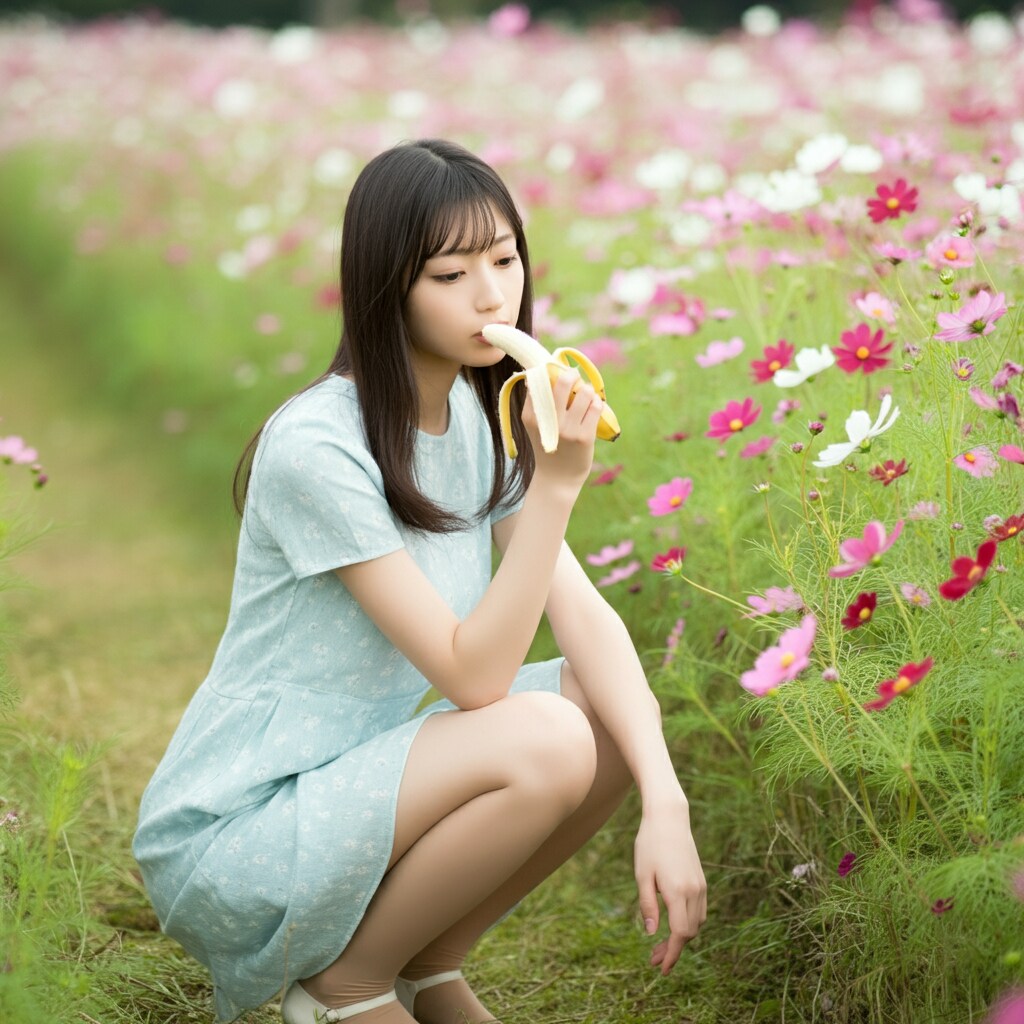ただコスモス畑でこっそりバナナを食べるだけのおねえさんの図です。それだけです。