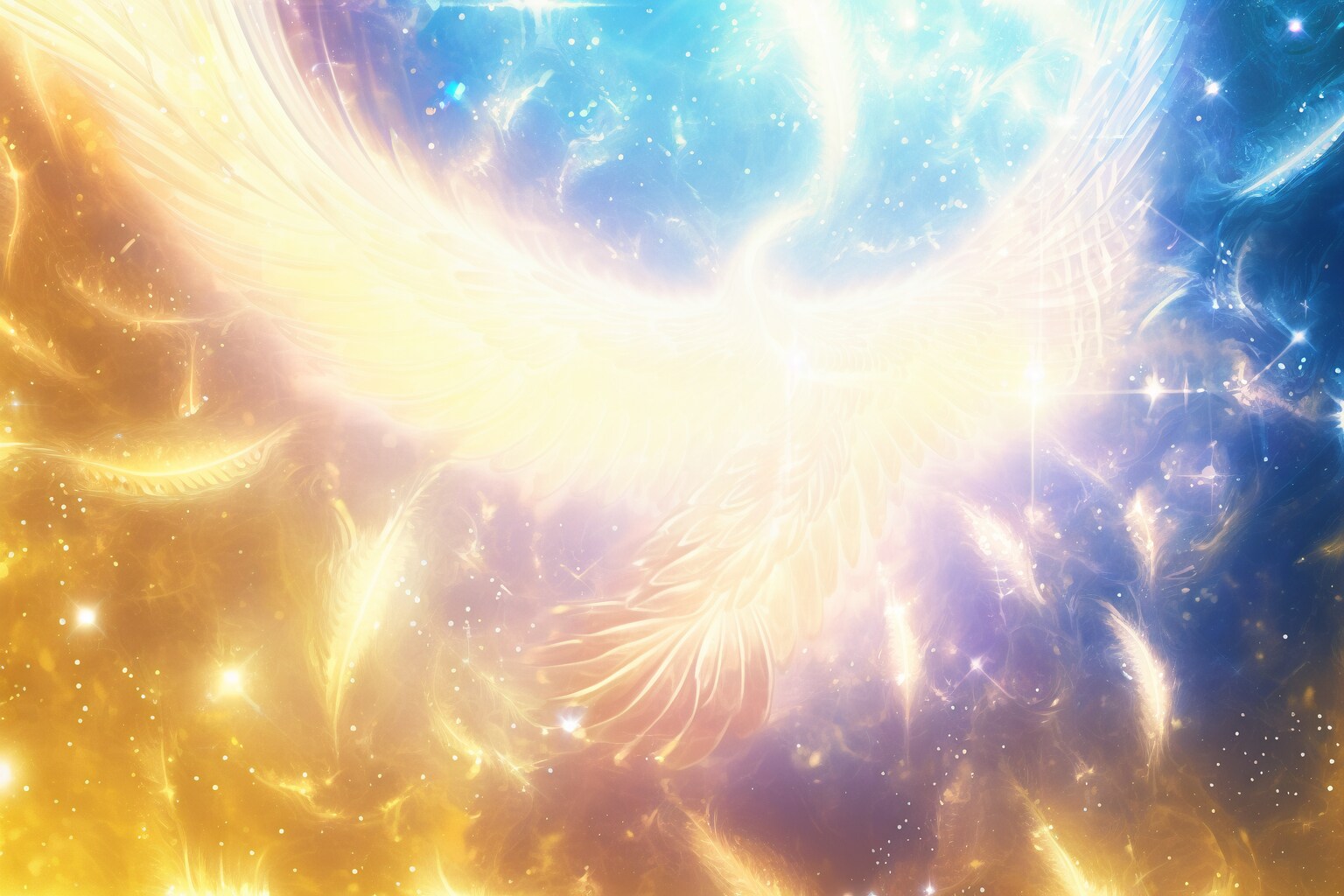 宇宙の画像と翼の画像を学習させ、上述のプロンプトを加えて生み出させた作品です。
