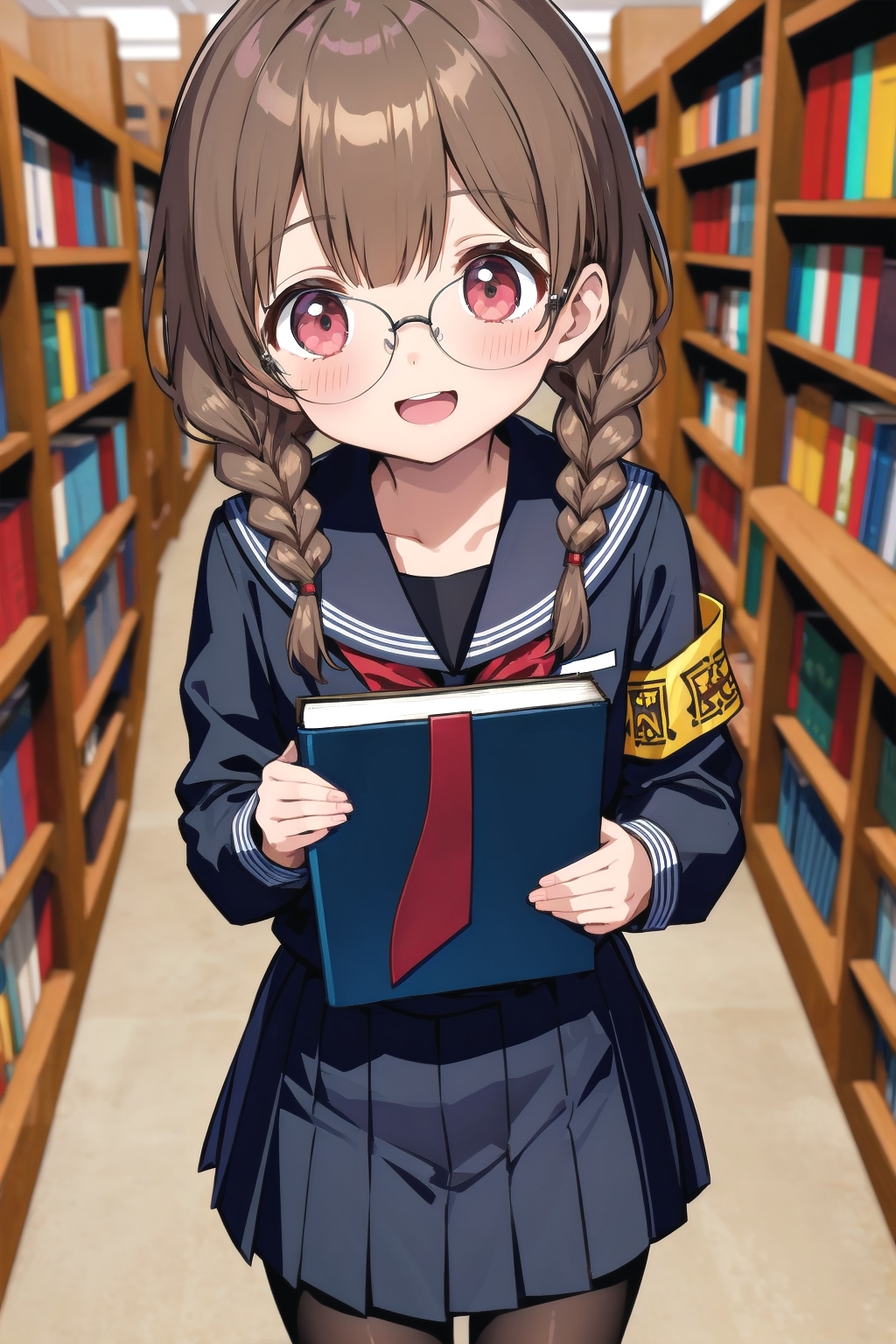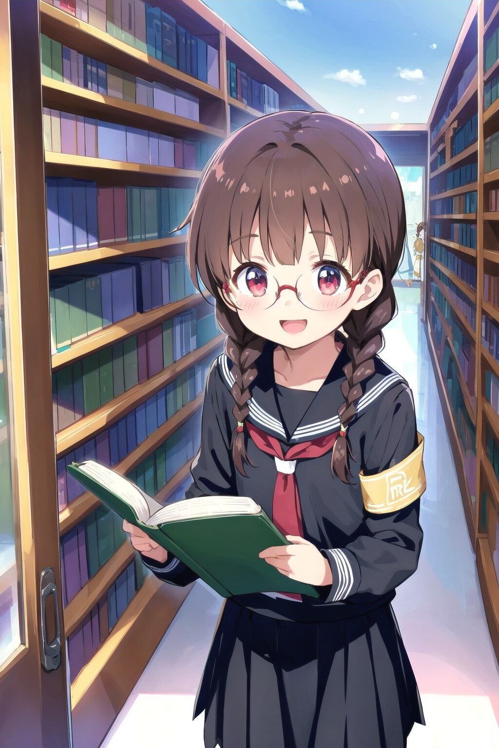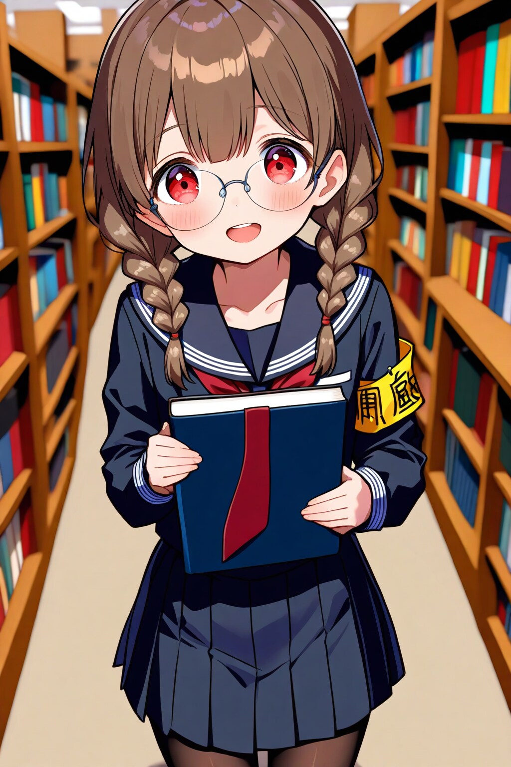 今回は図書館で本を持っている委員長ちゃんというお試しでよく使うプロンプトに出入り口、という要素を足してみました。PRISMは扉表現がうまくされず天井まで空化してしまうため外しています。