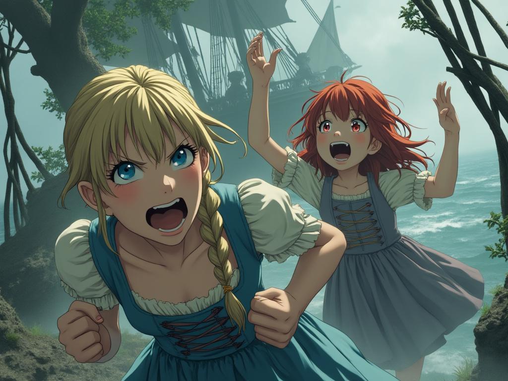 マリスとマリカが手を振り合う。さらに混乱するエルル。