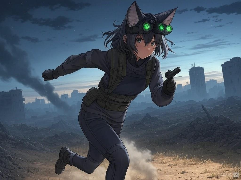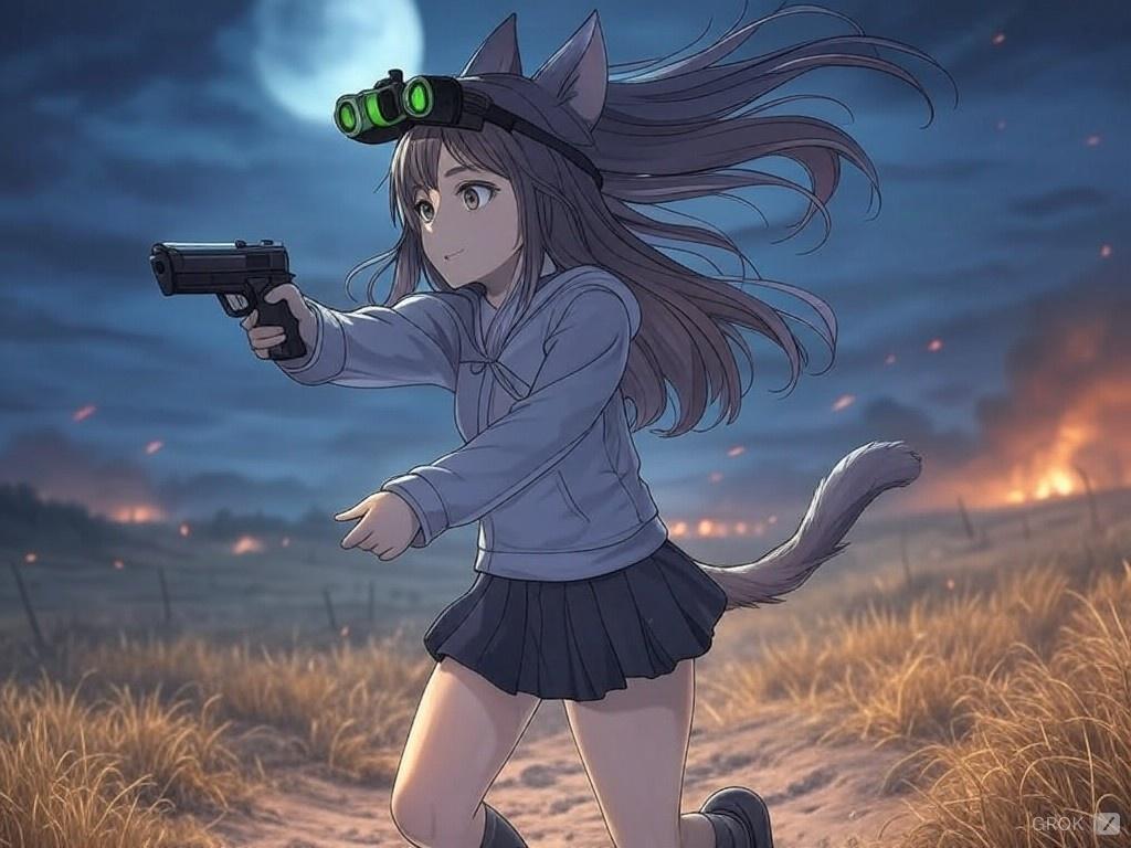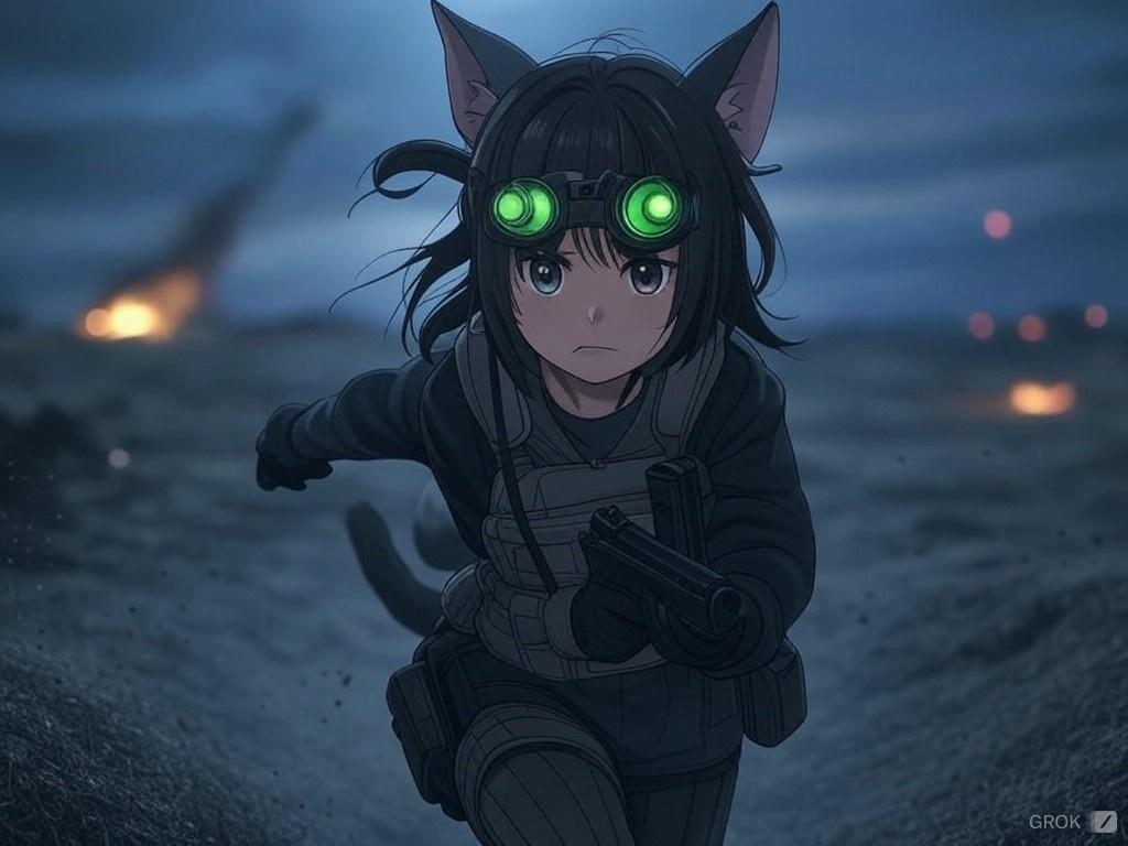 猫耳少女たちは暗視ゴーグルや各々の戦場メガネをかけて目標地点で待機する。
