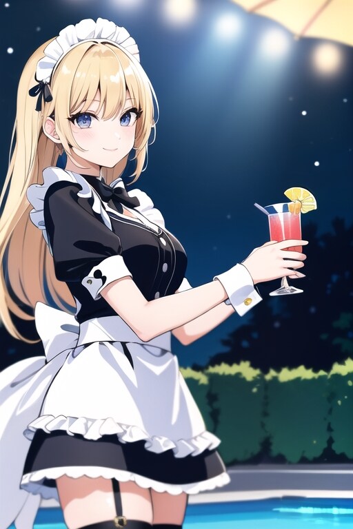 ナイトプールのバーでメイドさんがいたら、行きたいです。(8月作画未投稿分)