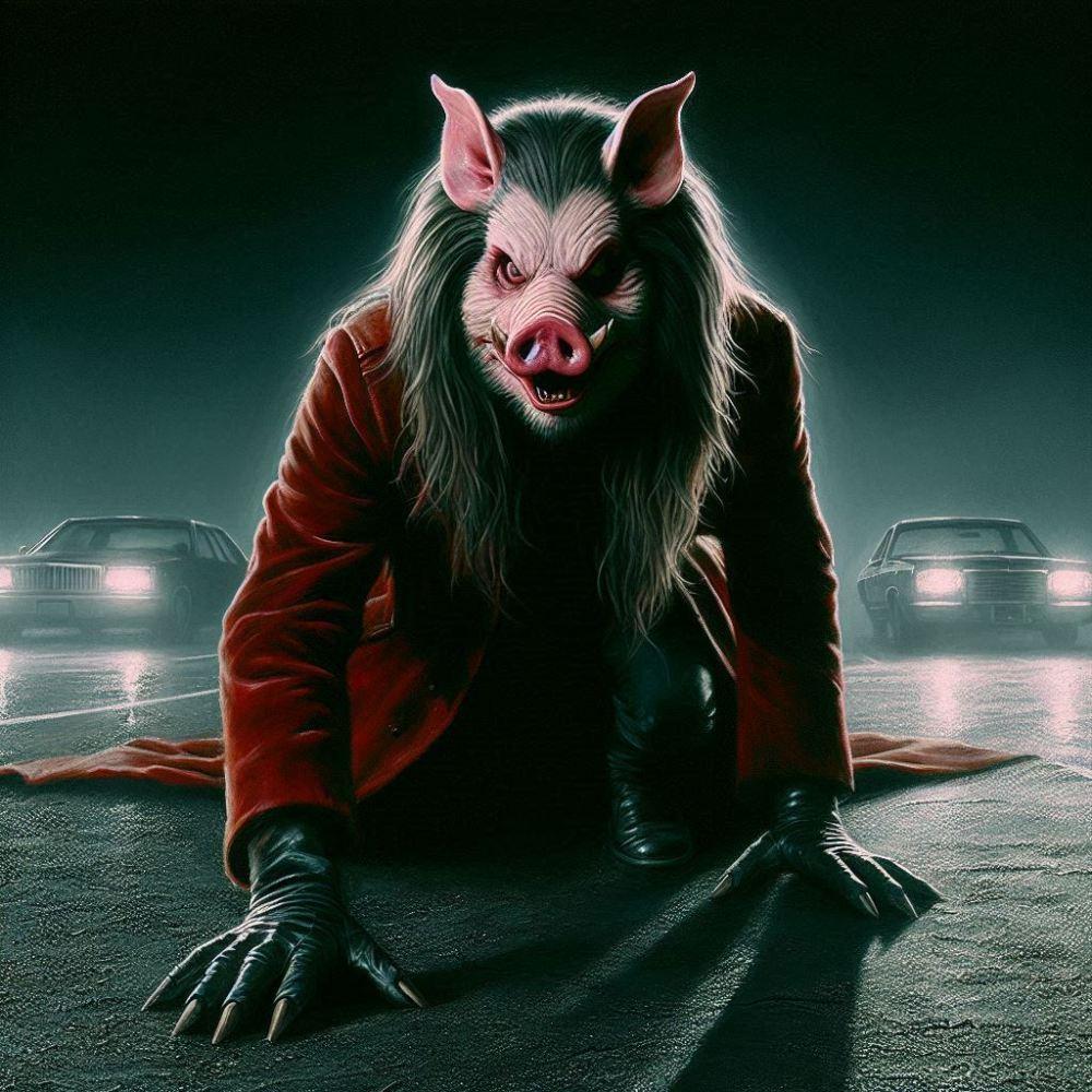 アクリルホラー、暗闇で這って襲うブタのマスクの怪人