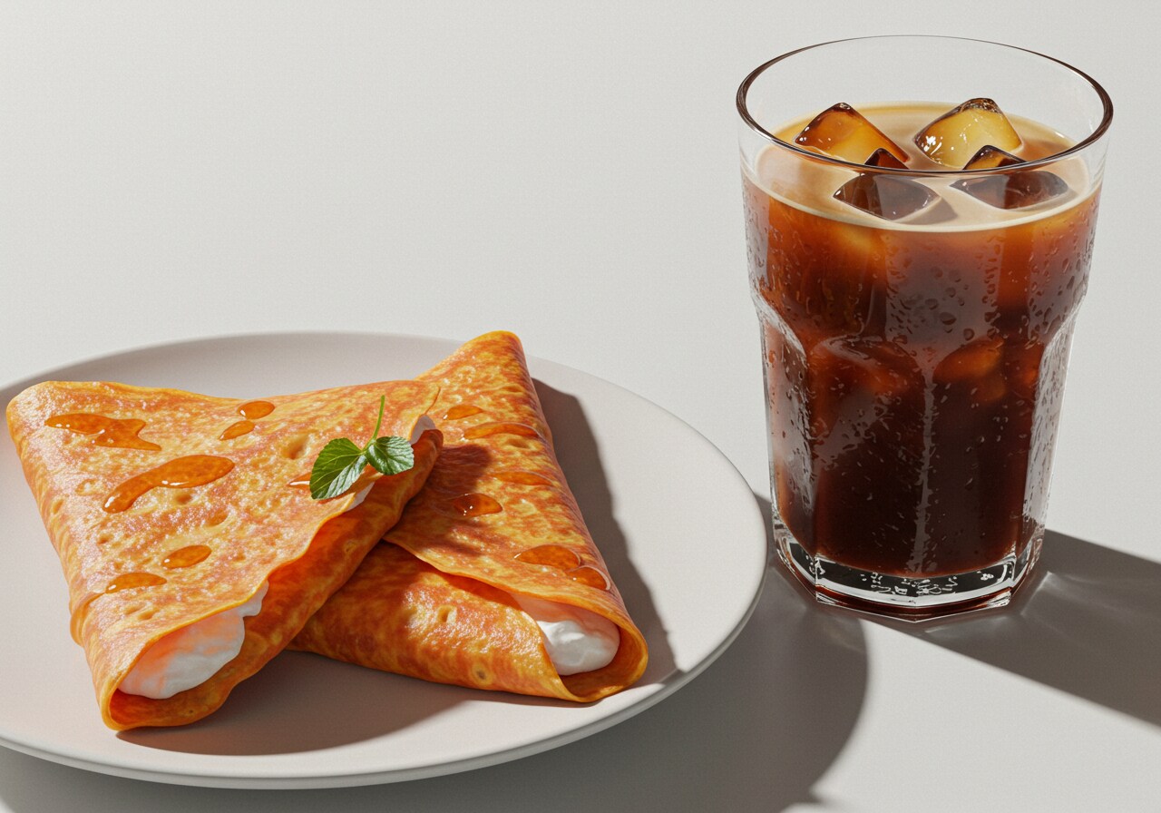 人参を練り込んだ生地のクレープと、具材に人参を使ったクレープの2種類が御座います。