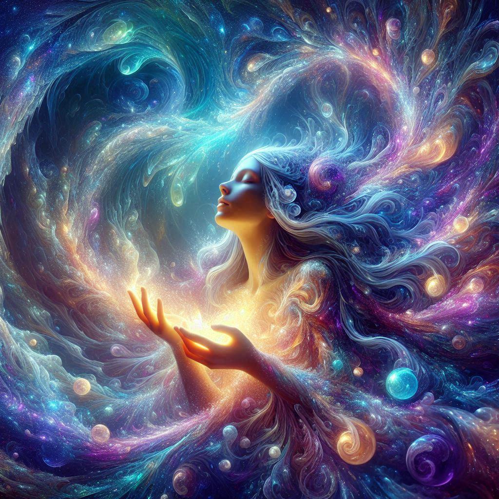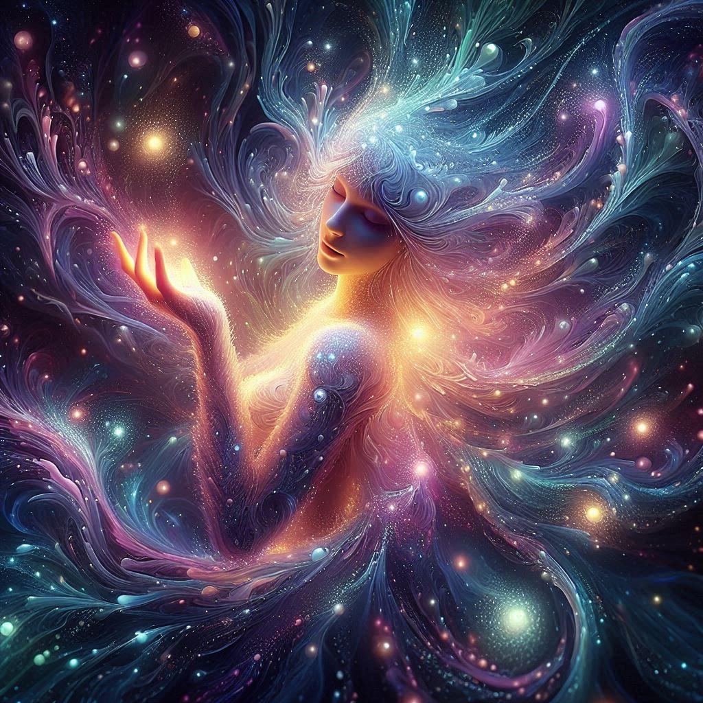 ちなみに、私的妄想シチュエーションをAIちゃんを使ってアニメやゲームキャラさせる事ばかり常日頃から考えている😅💦私にこーゆう感じの幻想的イラストを作るセンスは皆無なのでww、某所にあった水晶の女神様?みたいなイラストの呪文を改造して生成させて頂きました。