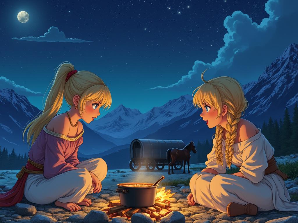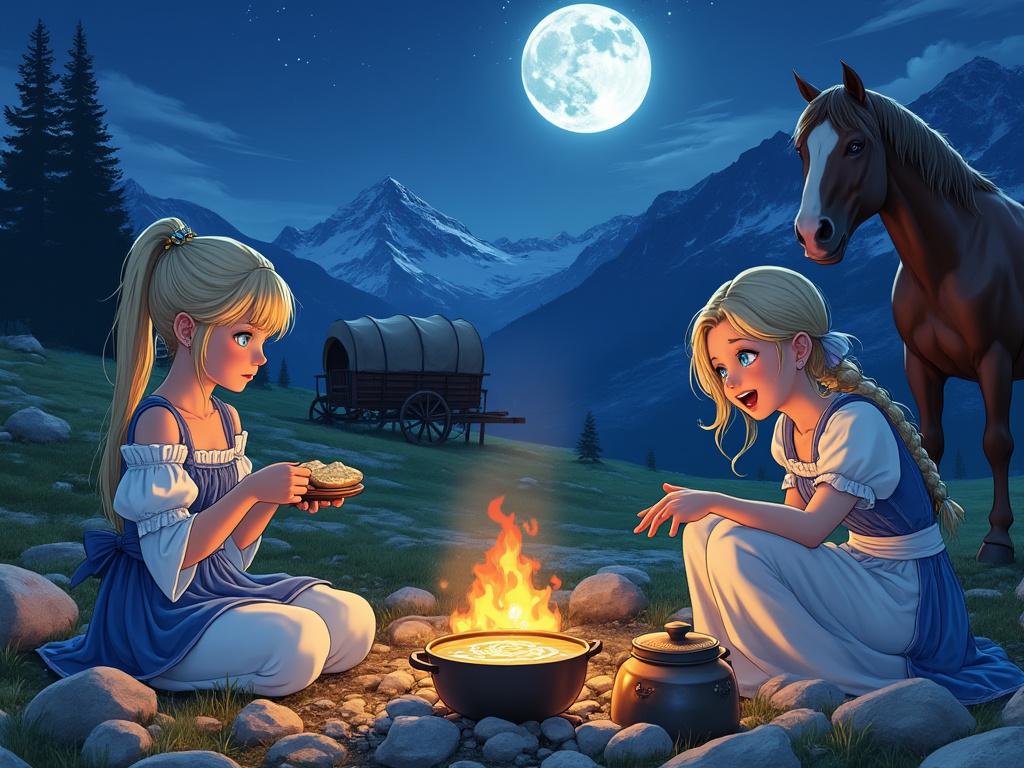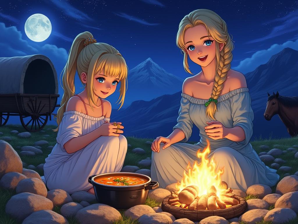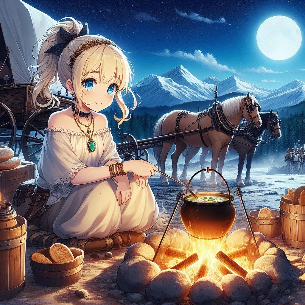 エルルとシャルロッテは堅パンとスープを煮込み、仕上げは。