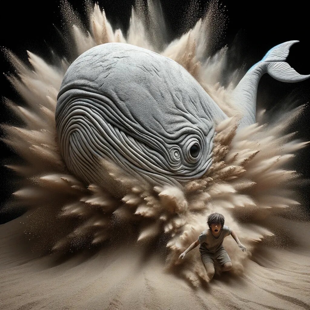 月の砂漠を泳ぐ鯨出現