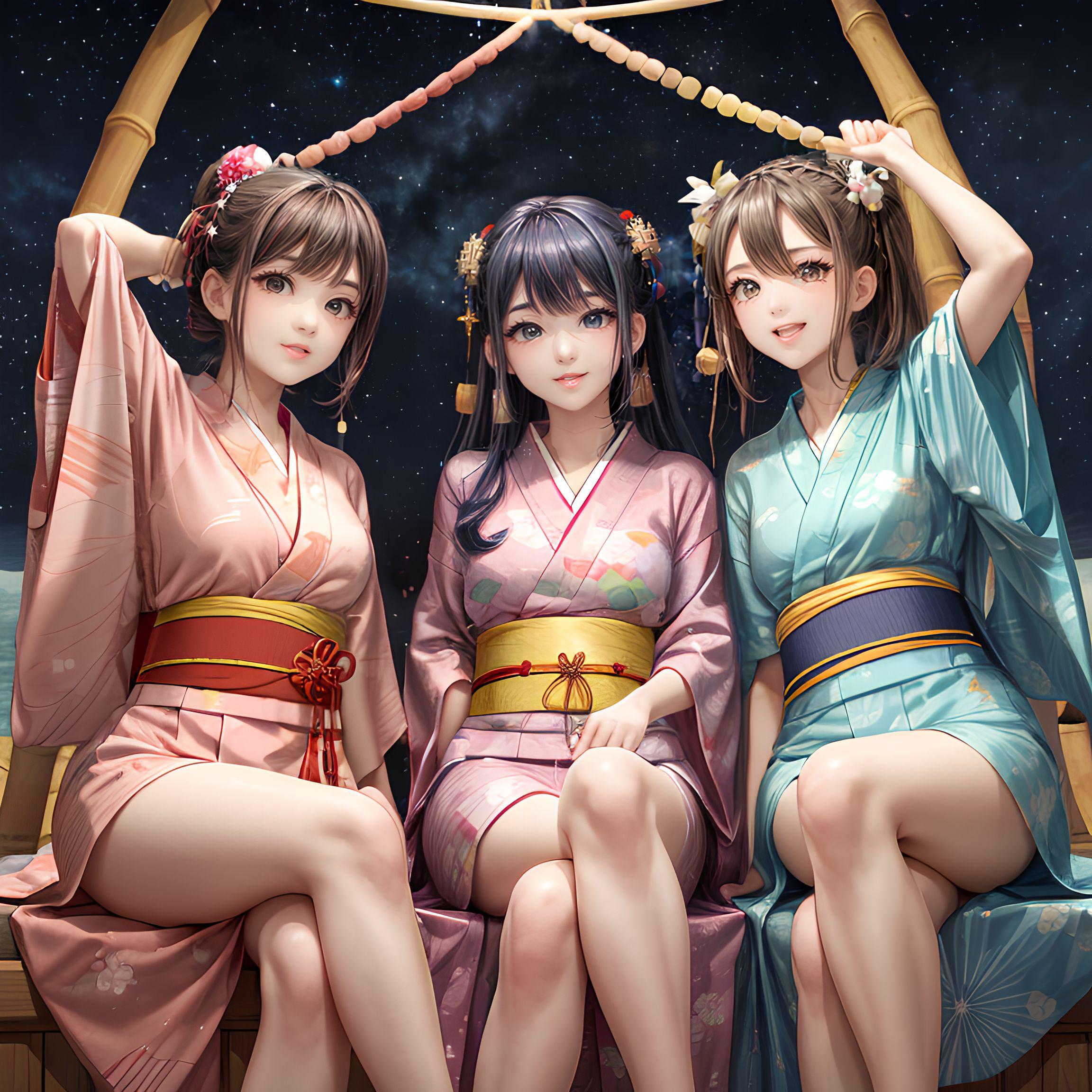 星降る夜に舞い踊るセクシーな浴衣美少女