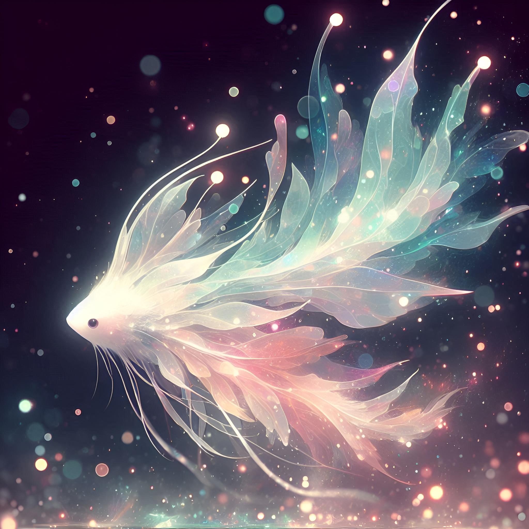 生態・説明:淡い光を発する半透明の薄いヒレ状の運動器を多数有する幻魚。外見から「フィッシュ(魚)」と呼称されているものの、エーテルの集合体ではないかとの指摘もあるが、目撃例が極端に少なく情報不足。適切な名称であるかはさらなる調査が待たれるところ。