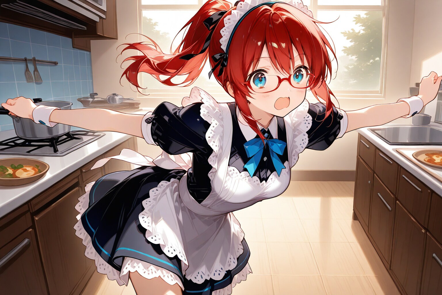 なにやら楽しいことがあったようでキッチンで踊っているメイドさん。
