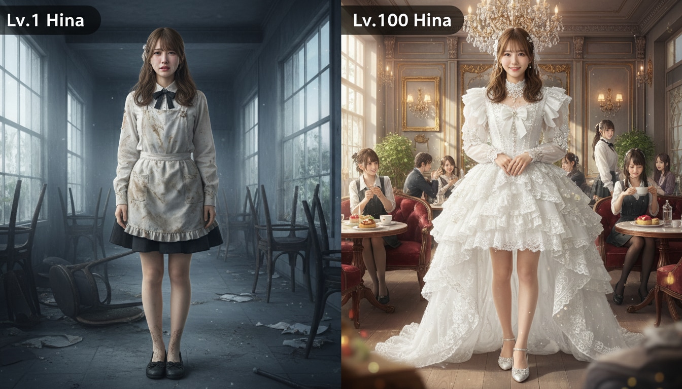 Lv.1 看板娘 → Lv.100 カフェ女王