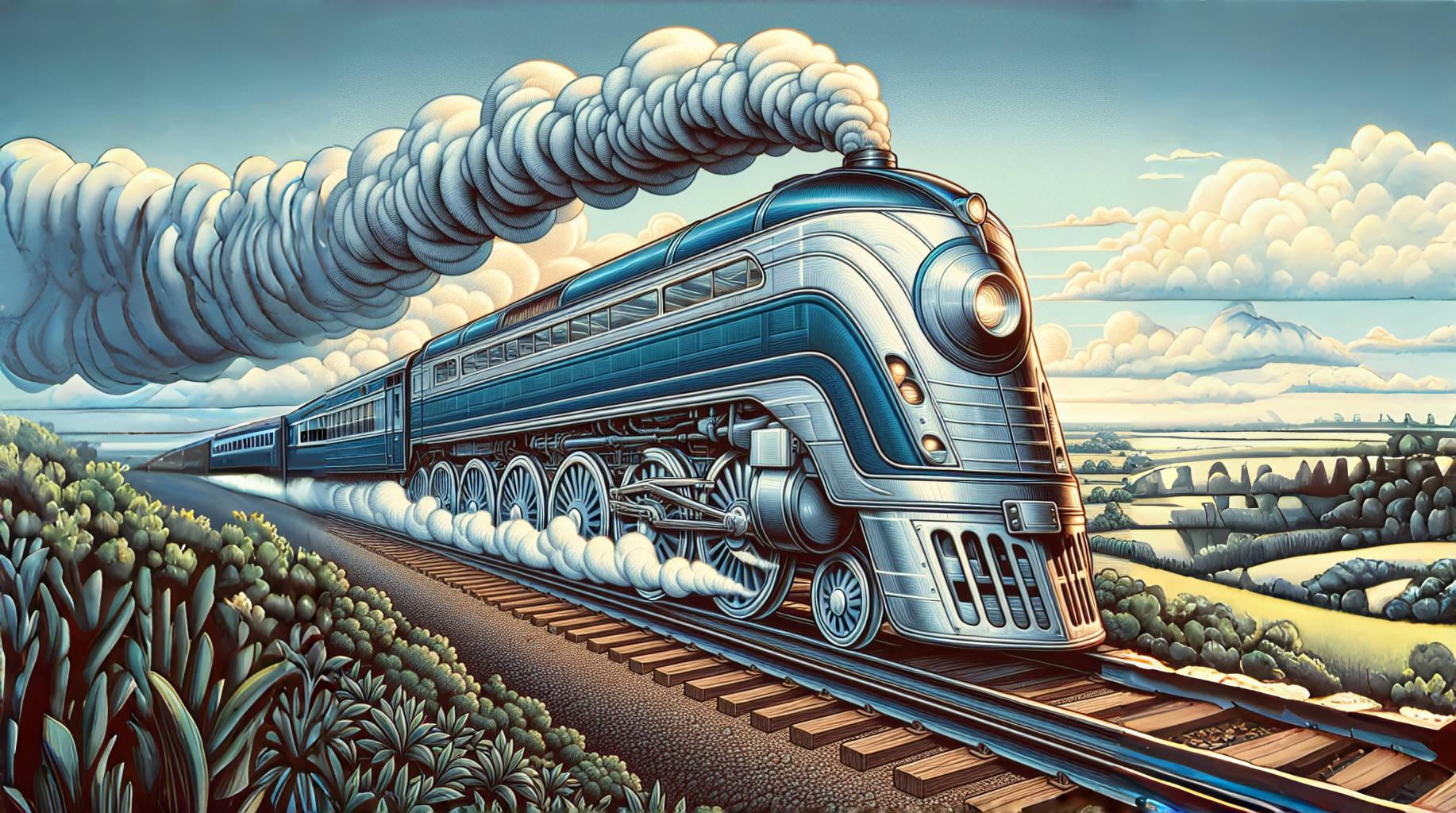 前にクラウドワークスAIで作成した機関車のイラストを、Meituで背景拡張してみました。